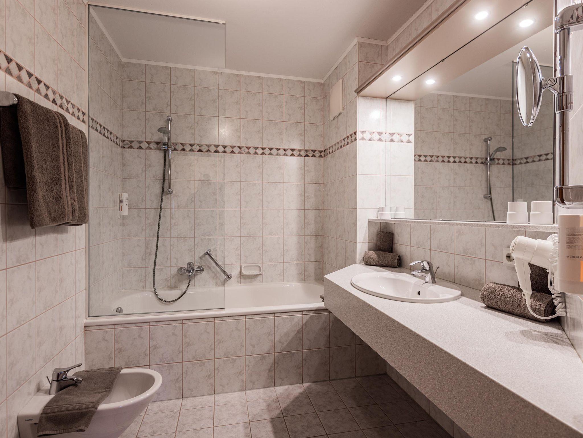 Getrenntes Schlafzimmer, wahlweise Südbalkon oder Terrasse. Basisausstattung: Gratis Eintritt und Nutzung der Wellness- und Spa-Einrichtungen, Hand-/Badetücher, Bademantel, Bettwäsche, Kochgeschirr, Wasserkocher, Kaffee- und Nespressomaschine, Haarföhn, IP-TV, Mini-Stereoanlage, Safe;