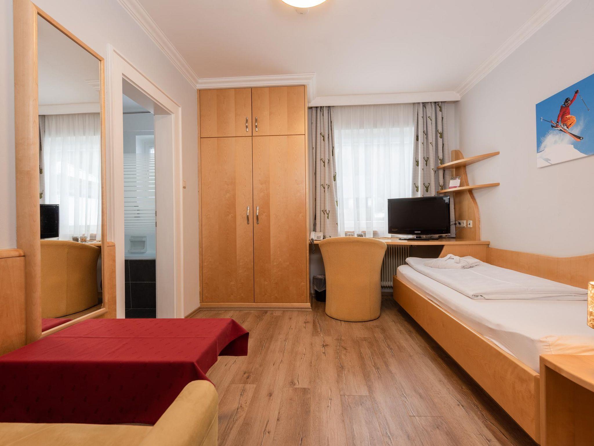 Appartement Birke mit Westbalkon Ca. 36 m² (für 2 bis 4 Personen), Westbalkon, Zwei getrennte Räume (4 Betten gesamt und Sternenhimmel), Gemütlicher Schlafraum und Wohnecke, Kabel-TV, Safe, Badezimmer mit Badewanne und WC, Kosmetikspiegel, Föhn, Bademantel, Wellness-Korb, GRATIS WLAN