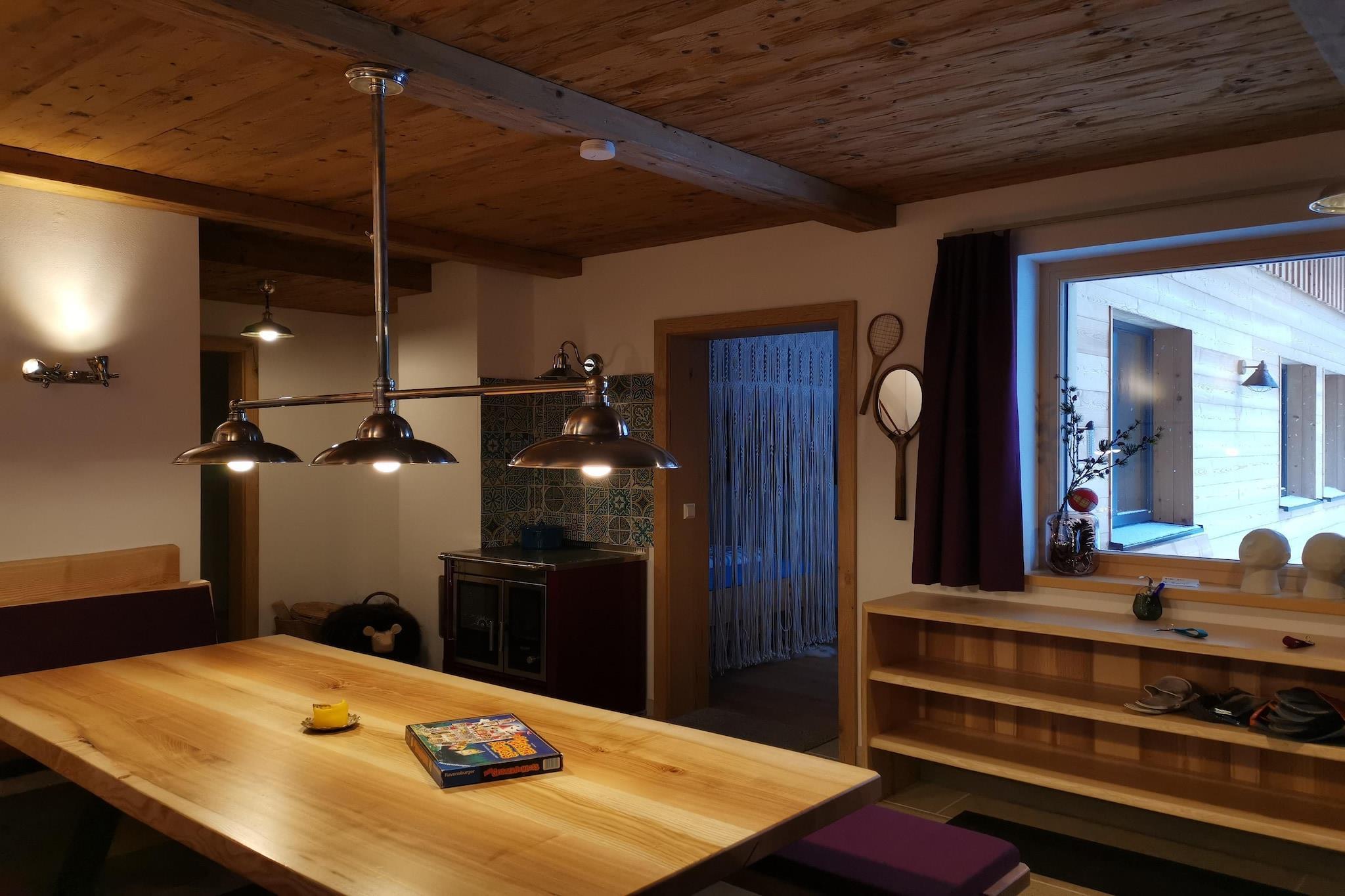 Denne specielle, moderne-rustikke og fritstående premium-chalet til maks. 10 personer ligger midt i skisportsstedet Tauplitz på omkring 900 m over havets overflade i Steiermark og tilbyder en smuk udsigt over det omkringliggende bjerglandskab i Salzkammergut. . Hytten er opdelt i 3 individuelle områder, som er forbundet med hinanden, det centrale element er fællesrummet, med et højkvalitets stort spisebord i træ og en brændeovn. Lige ved siden af inviterer saunaen til at slappe af. I stueetagen er der et fuldt udstyret køkken af høj kvalitet med en køkkenø og en træterrasse, et lille tekøkken, to opholds-/spiseområder, et stort soveværelse og et badeværelse. På øverste etage er der yderligere 3 soveværelser med loftskarakter, 2 altaner, 1 træterrasse, 2 badeværelser og endnu en stue/spisestue med et fuldt udstyret køkken. Denne premium chalet byder også på en smukt anlagt have med en naturlig svømmedam, en festhytte, 3 garagepladser, et skiopbevaringsrum med skistøvlevarmer, et opbevaringsrum til cykler og en vaskemaskine med tørretumbler. Tauplitz er beliggende i hjertet af Østrig, Ausseerland - Salzkammergut, er på 1650m det højeste søplateau i Centraleuropa og byder på utallige vandreruter såsom 6 søer vandretur samt mountainbike- og cykelture. Tauplitz er også det største enkelte skiområde og byder med Tauplitzalm - Bad Mitterndorf skiområde på 43 kilometer pister i 900 - 1965 meter over havets overflade på 3 bjerge. Om sommeren byder Altaussee-søen, Salza-reservoiret og Alpenbad i Bad Mitterndorf på masser af svømmesjov! Direkte i Tauplitz eller Bad Mitterndorf er der masser af indkøbsmuligheder til dine daglige behov samt et godt udvalg af restauranter. Der er også en tennisbane og en udendørs swimmingpool i umiddelbar nærhed af hytten.