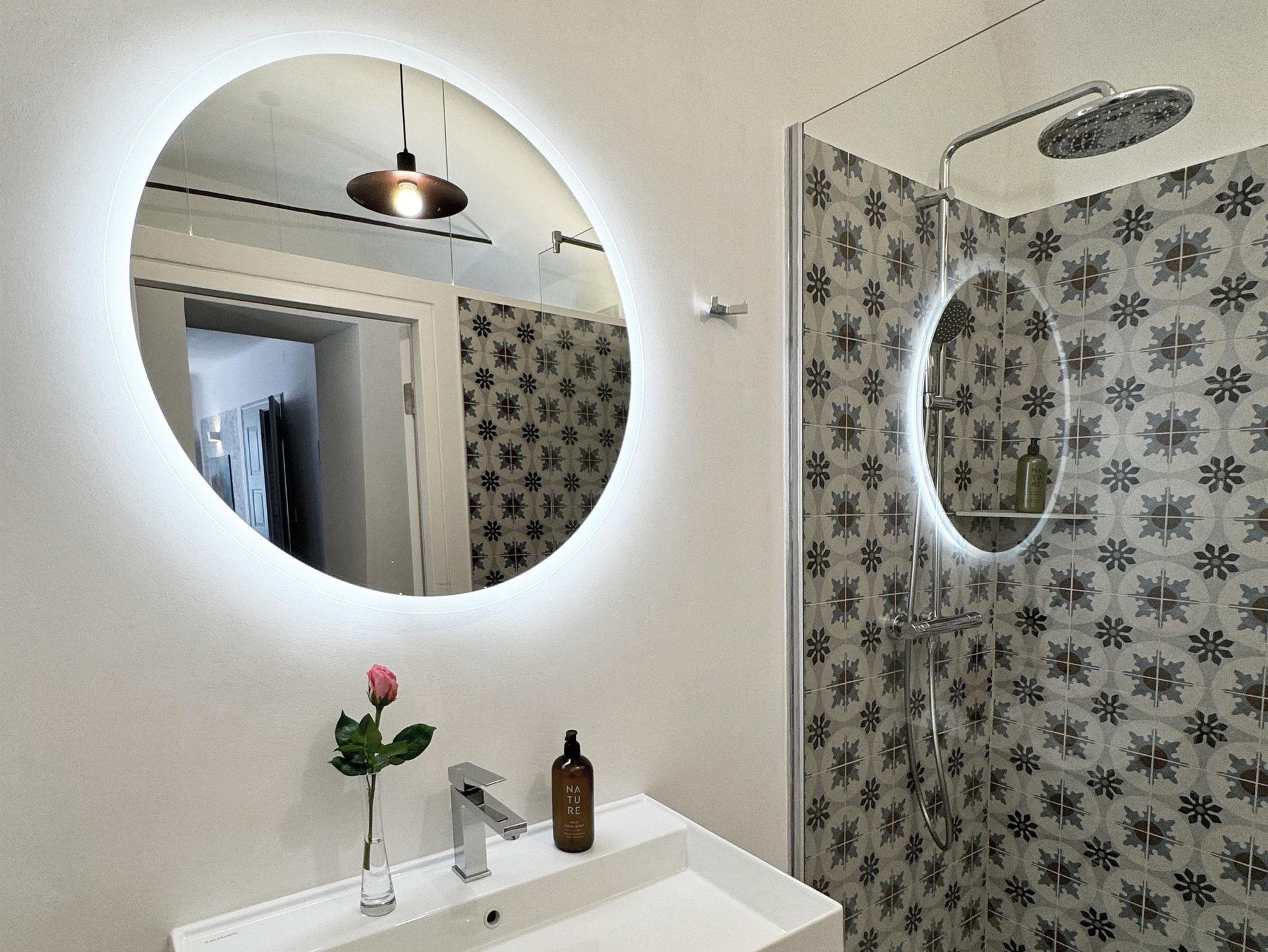 • Modernes Badezimmer mit Regendusche und hochwertigen Pflegeprodukten