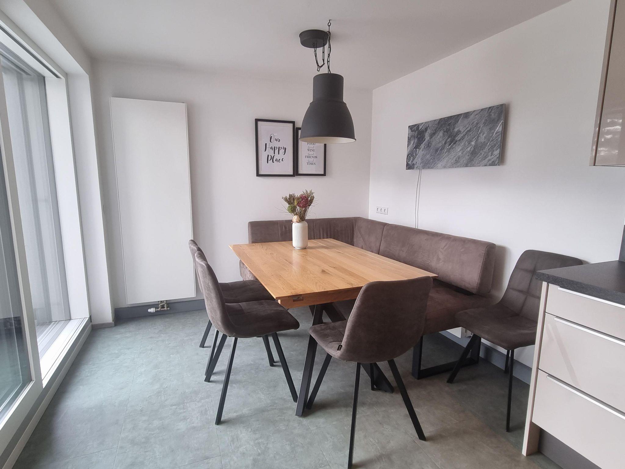Unser Esstisch ist mit einer vorhandenen Ansteckplatte auf 1,80 m erweiterbar (ca. f. 9 Personen).