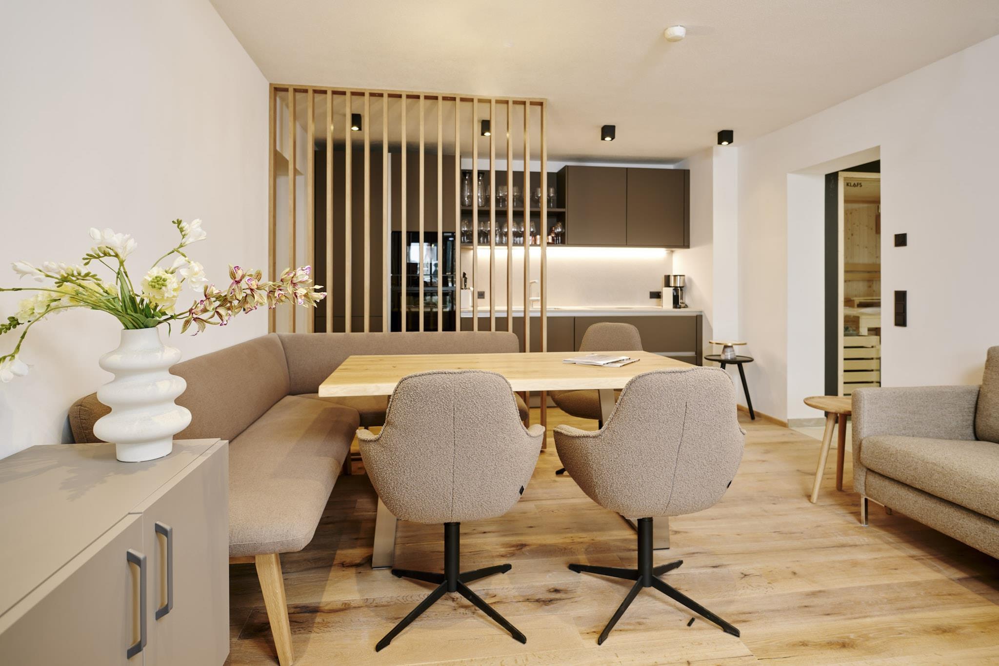 Den moderne ferielejlighed i Berwang har en solrig sydvendt beliggenhed, direkte adgang til pisterne og en unik panoramaudsigt over de tyrolske bjerge. På 104 m² er der plads til op til 6 personer. Indkvarteringen er udstyret med 2 soveværelser, 1 med dobbeltseng og enkeltseng og 1 med dobbeltseng og køjeseng, og har 2 badeværelser med bruser og toilet. Det fuldt udstyrede køkken indbyder til at lave mad og nyde måltiderne sammen. Det absolutte højdepunkt i denne indkvartering er det private wellness-område med finsk sauna og opvarmet udendørs badekar. Du har også adgang til hotellets eget wellness-område, som lover en afslappende wellness-oplevelse med infinity-pool, panorama-saunaer og andre højdepunkter. Tiroler Zugspitz Arena tilbyder ideelle forhold for aktive feriegæster hele året rundt. Om vinteren står 142 kilometer pister til rådighed med snegaranti. I kombination med direkte adgang til pisterne (ski-in/ski-out) er du garanteret en god dag på ski. Om sommeren er overnatningsstedet det ideelle udgangspunkt for vandreture og mountainbiketure.