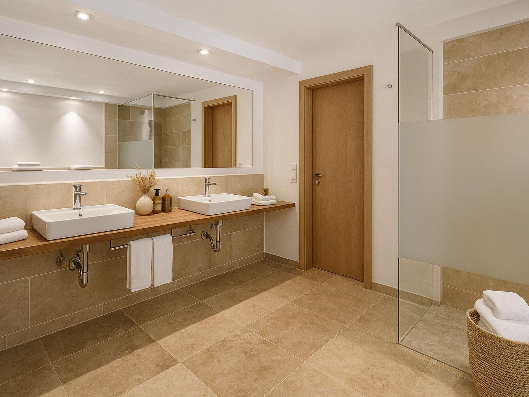 Dieses Apartment bietet Platz für 4 Personen auf 110 m². Der großzügige Wohnbereich mit großem Sofa, TV und Beamer lädt zum Entspannen ein. Drei Schlafzimmer, jeweils mit Doppelbett und Einzelbett, sorgen für Komfort. Die offene, voll ausgestattete Küche bietet alle Annehmlichkeiten. Das moderne Bad mit Dusche und ein Esstisch, der auch als Billardtisch genutzt werden kann, runden das Angebot ab. Das Apartment liegt im Erdgeschoss und verfügt über einen separaten Eingang.