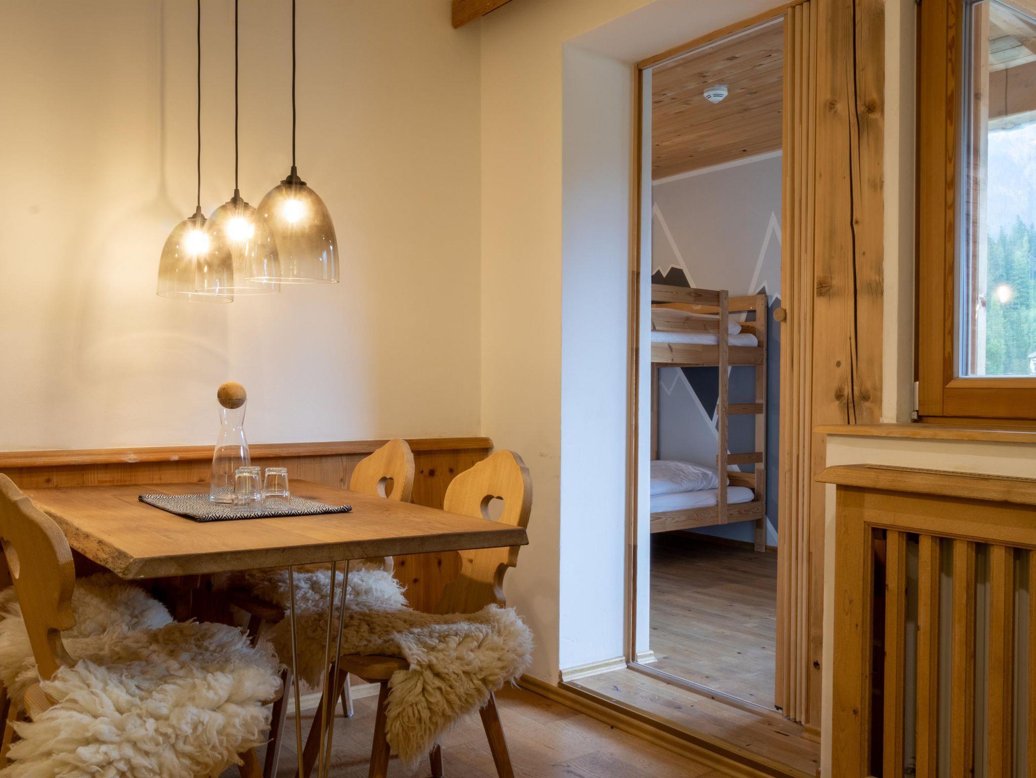 Die Family Suite bietet auf 36 m² Platz für bis zu 3 Personen und vereint Komfort mit einem naturnahen Ambiente – ideal für Familien. Der moderne Wohn- und Schlafbereich verfügt über ein gemütliches Doppelbett und einem anliegenden Bereich mit Stockbett. Eine voll ausgestattete Küche sowie ein modernes Bad mit Dusche sorgen für zusätzlichen Wohlfühlfaktor. Der sonnige Südbalkon eröffnet einen traumhaften Blick auf die Berge. Bequem über den Aufzug erreichbar.