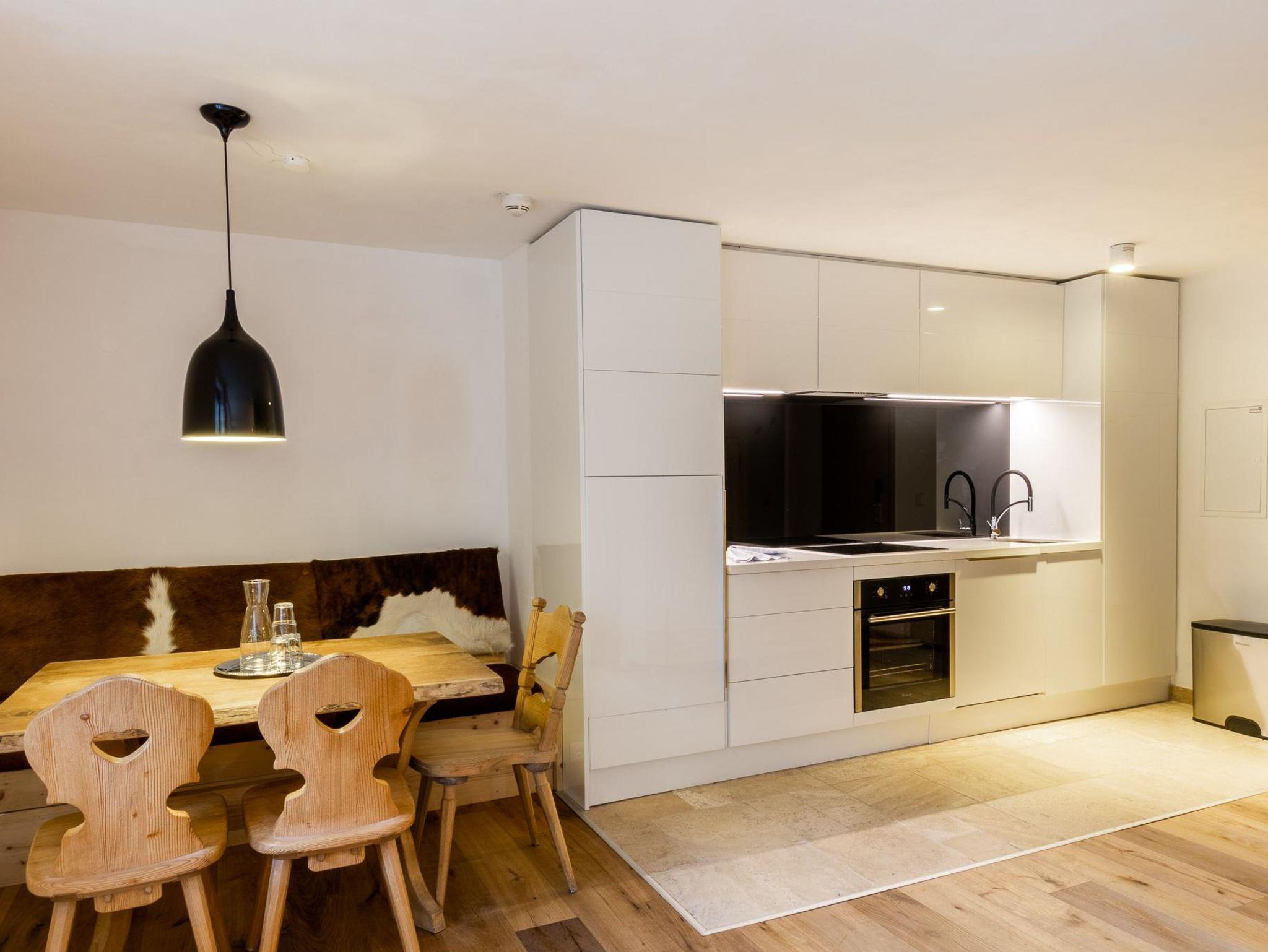 Familienfreundliches Apartment mit einem gemütlichen Schlafzimmern – eines mit Doppel- und Stockbett. Der helle Wohn-Essbereich mit voll ausgestatteter Küche, Sofaecke und Esstisch öffnet sich zum Balkon mit traumhaftem Bergpanorama. Ideal für erholsame Tage in der Tiroler Natur.