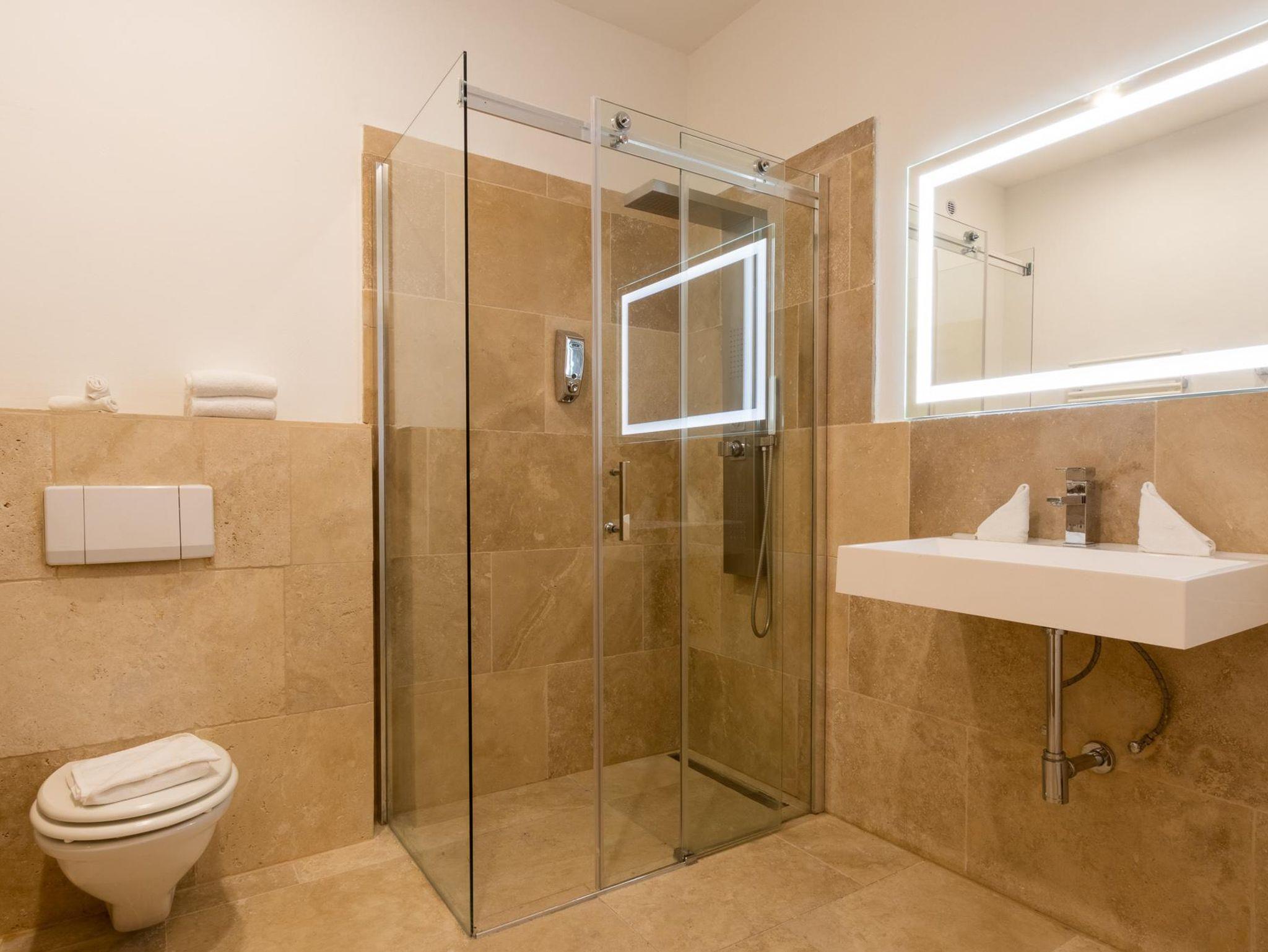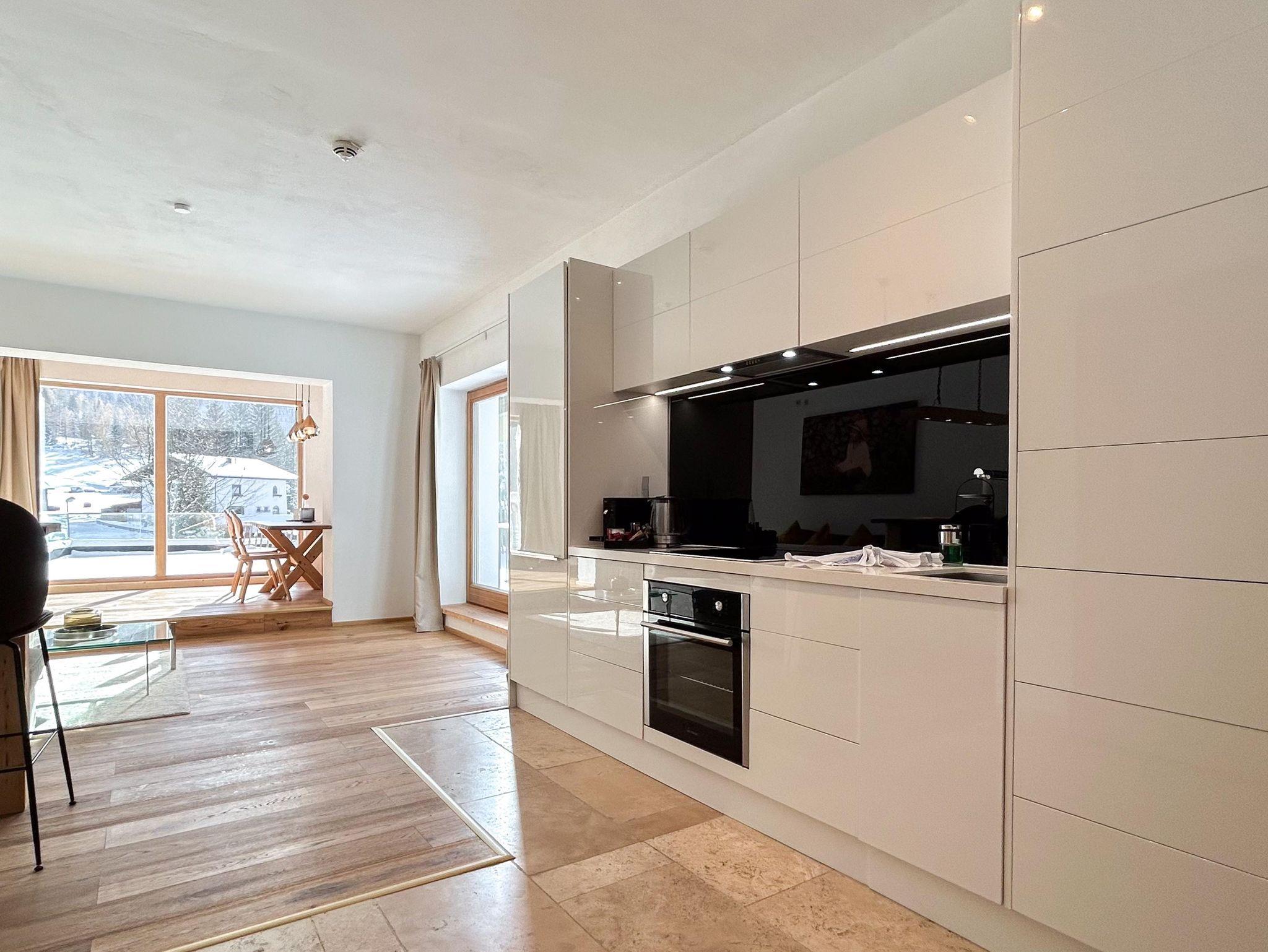 Hochwertig ausgestattetes Apartment für bis zu 5 Personen mit zwei Schlafzimmern – eines mit Doppelbett, das andere mit Stockbett – sowie zusätzlicher Schlafmöglichkeit im Wohnbereich. Der offene Wohn-Essraum mit voll ausgestatteter Küche, Sofa und Esstisch führt auf Terrasse und Garten mit herrlichem Bergblick. Modernes Bad, separates WC und Aufzugzugang sorgen für Komfort auf allen Ebenen.