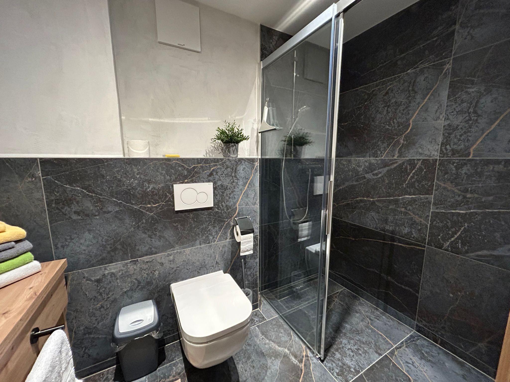 This is a completely newly built flat (first occupancy from winter 2025) and can accommodate up to 8 people. On 85m² (see plan, photos of the final furnishings will follow as soon as everything is ready) you will find everything you need to spend a pleasant holiday with your family or friends. Three bedrooms with double beds (+ 2 sleeping possibilities in the living room), two bathrooms and a large living room with well-equipped kitchen as well as the large terrace (27m²) with evening sun offer enough space for everyone! In the play corner in the hallway, young and old will find various games, puzzles, books etc. to play or even some friends who would like to play with you.