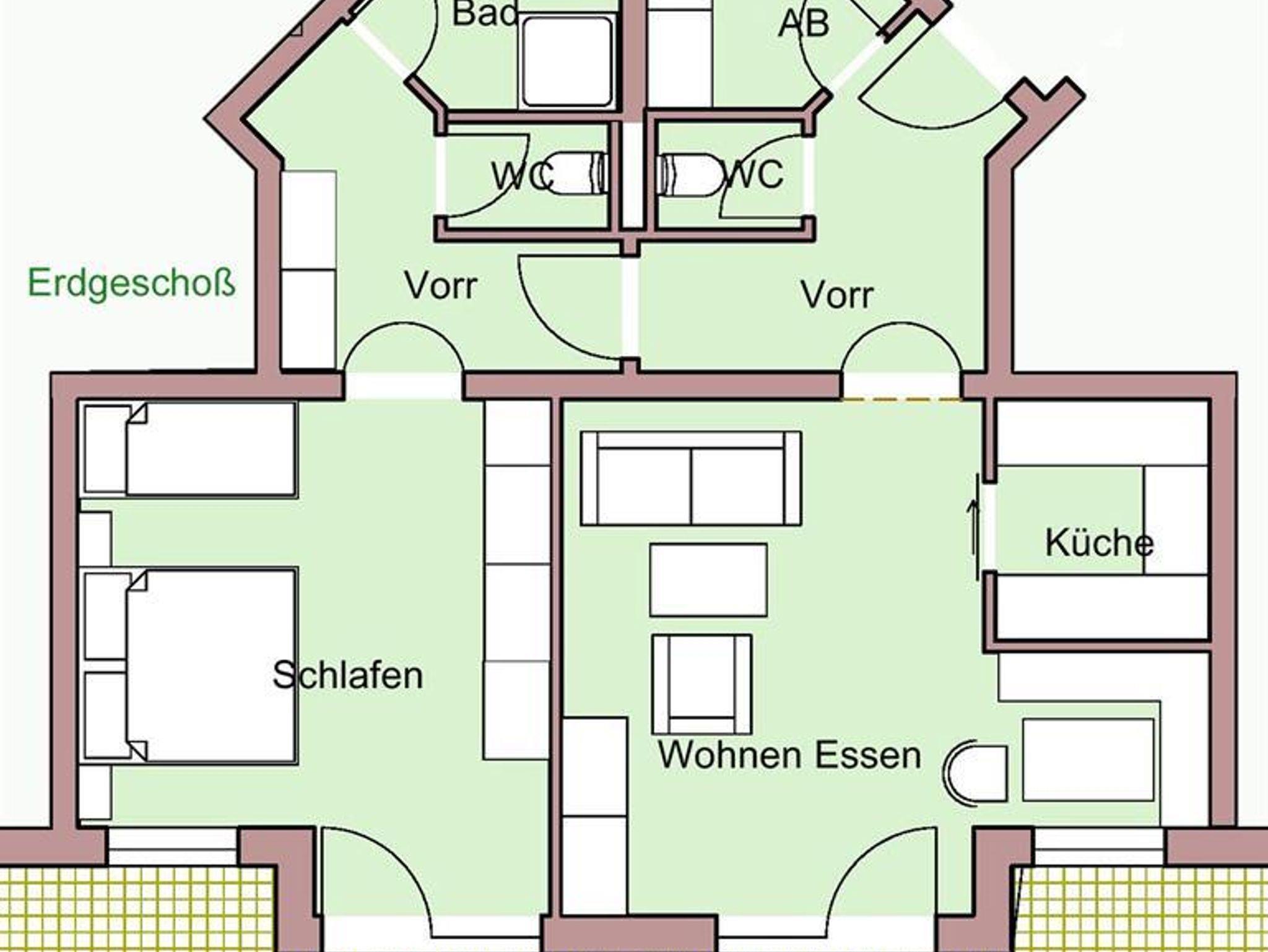 Ferienwohnung (63-67m2 Wohnfläche + 9-23 m2 Balkon oder Terrasse) bietet Platz für 2 bis 5 Personen. Die Apartments verfügen über ein Schlafzimmer (Doppelbett + Zusatzbett), Badezimmer mit Dusche, 2 WC´s, Abstellraum, Vorraum mit Garderobe ein Wohnzimmer mit Ausziehcouch und eine Küche bzw. Kochecke.
