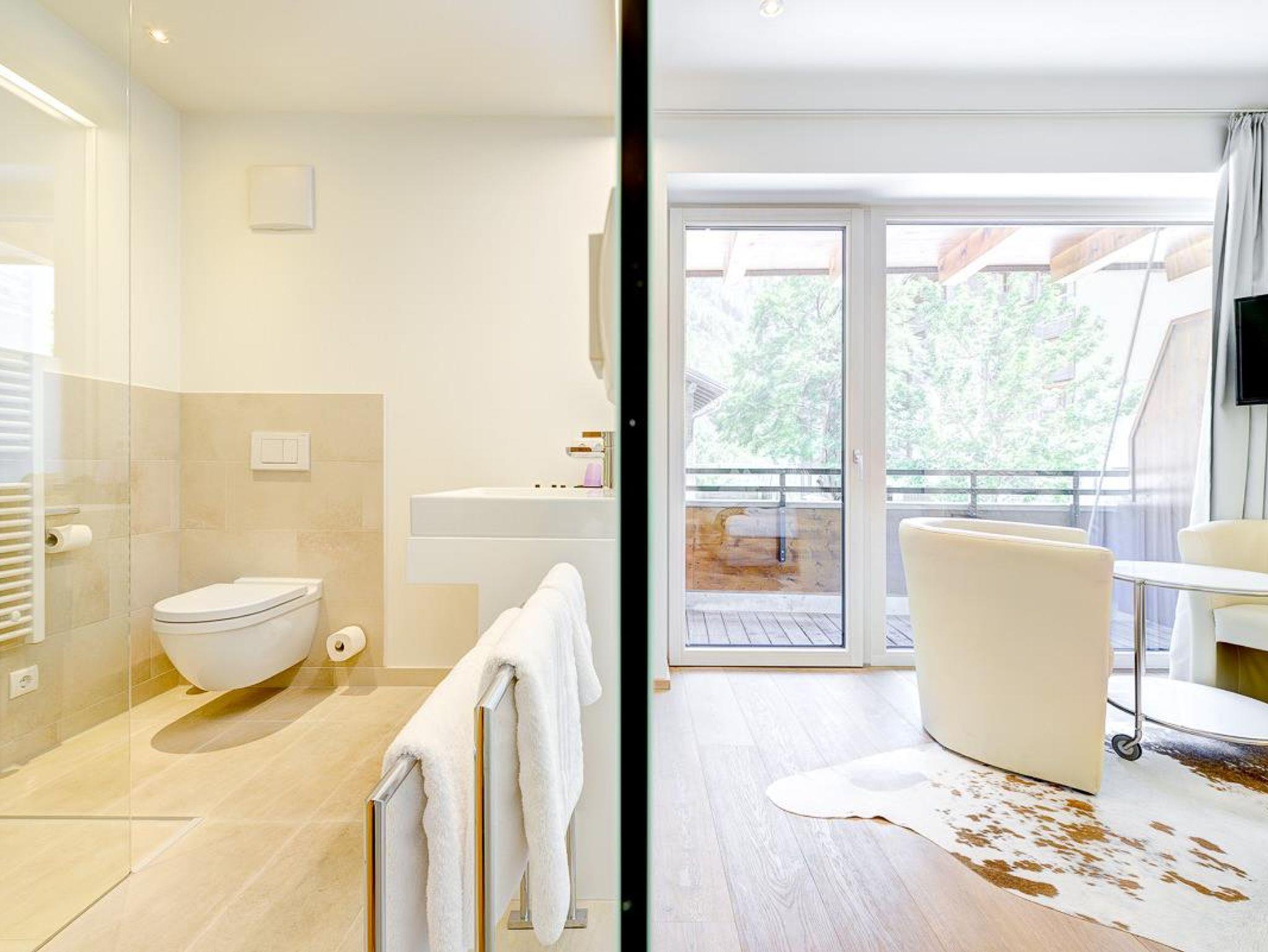 Stellen Sie sich vor, Sie wären Gast in unserer neuen Suite. Fünfundfünfzig stylische Quadratmeter zum Entspannen nur für Sie allein ! Wie wär's mit einem gepflegten Glas Wein auf der großzügigen Sonnenterrasse, während Sie den Blick in die majestätischen aufragenden Berggipfel schweifen lassen und dabei die wohltuende Stille genießen ?