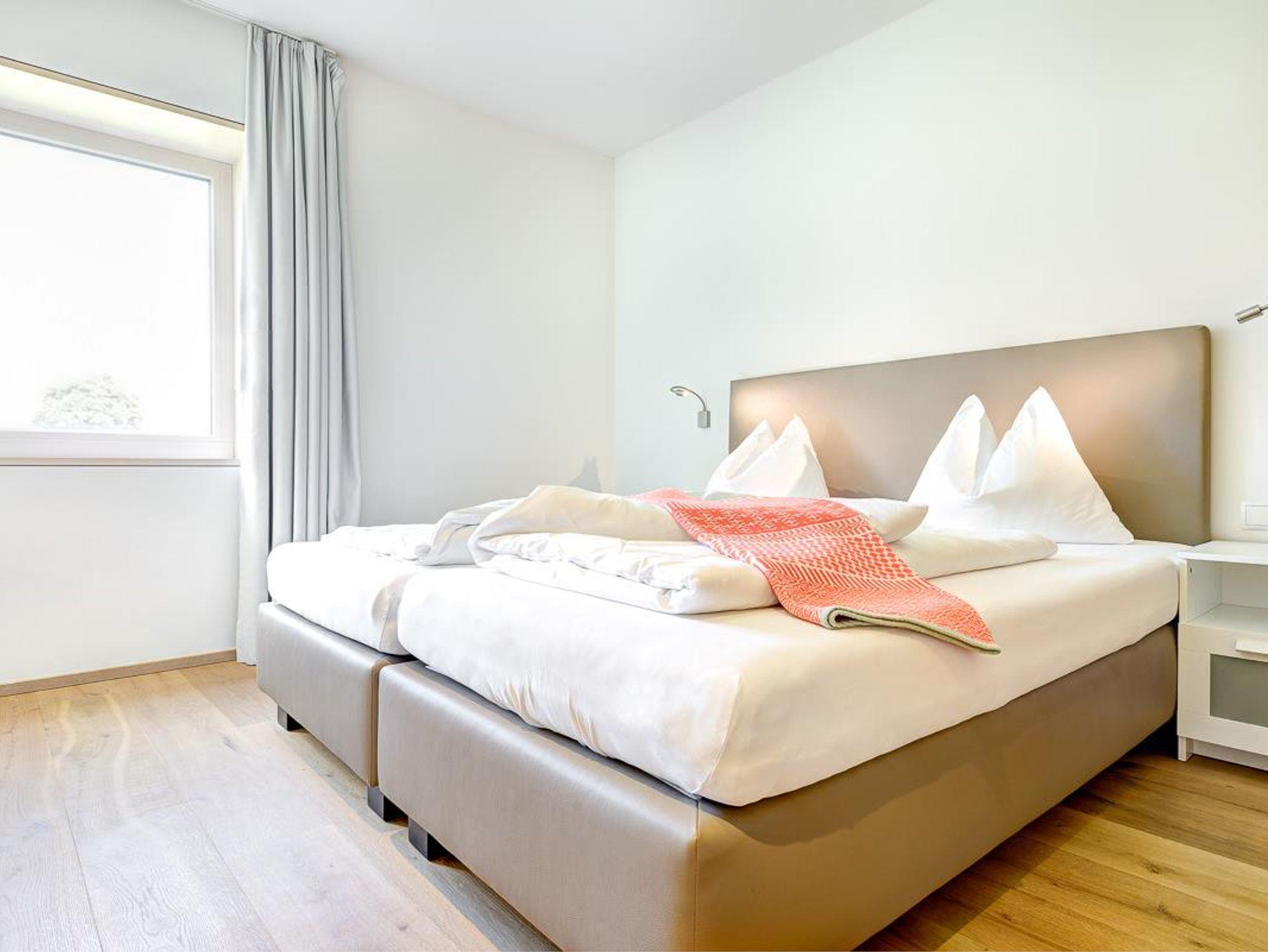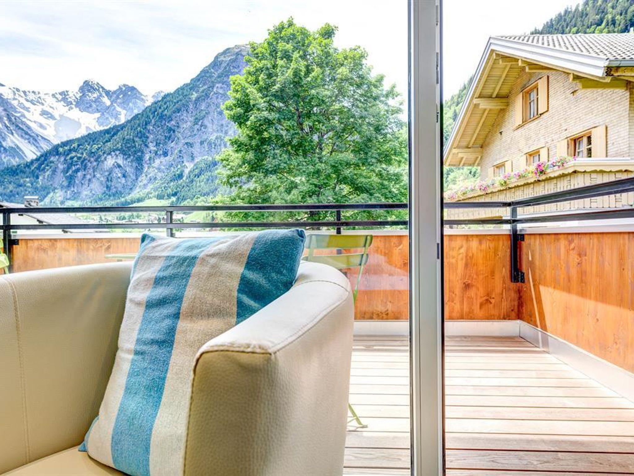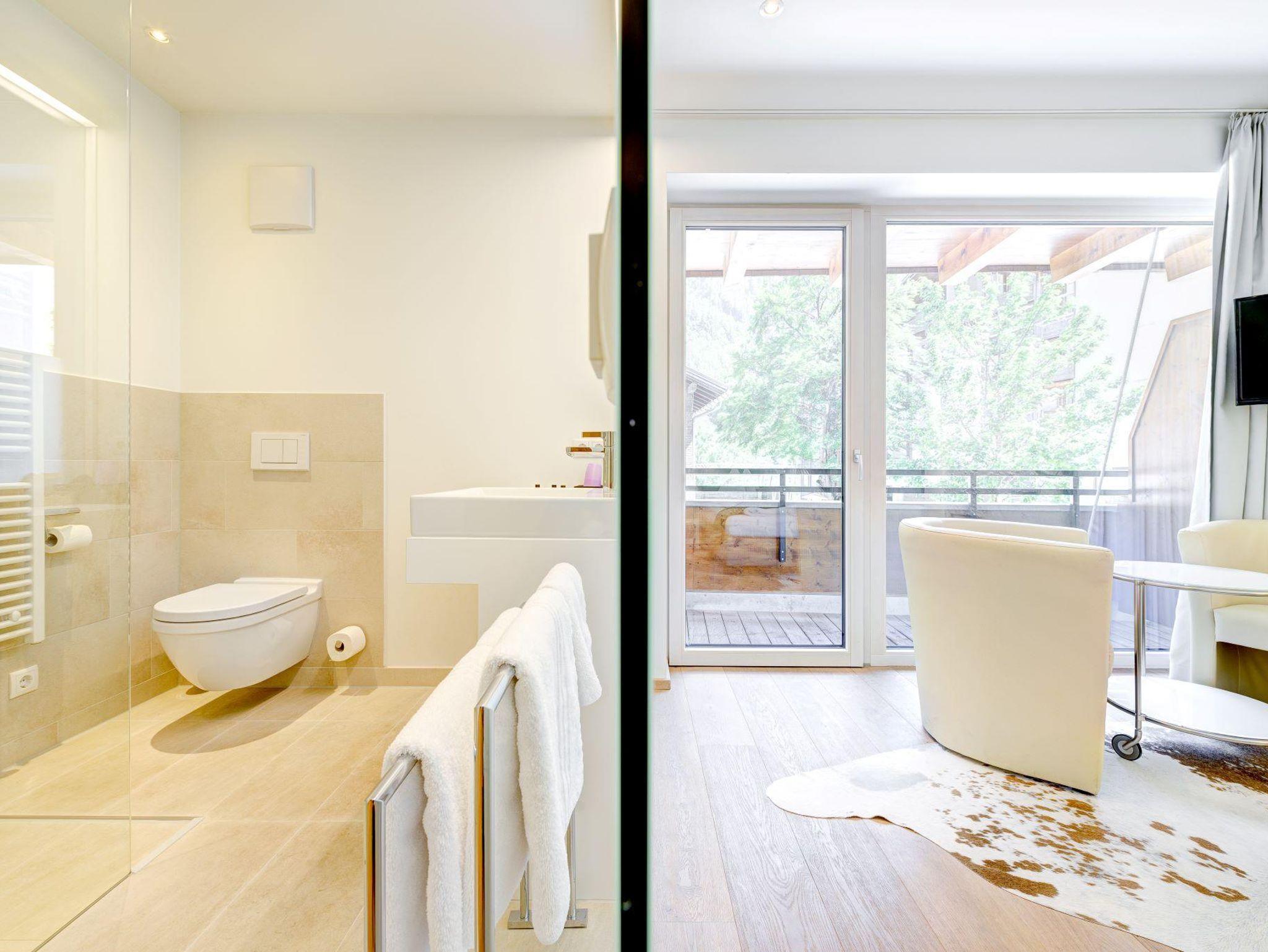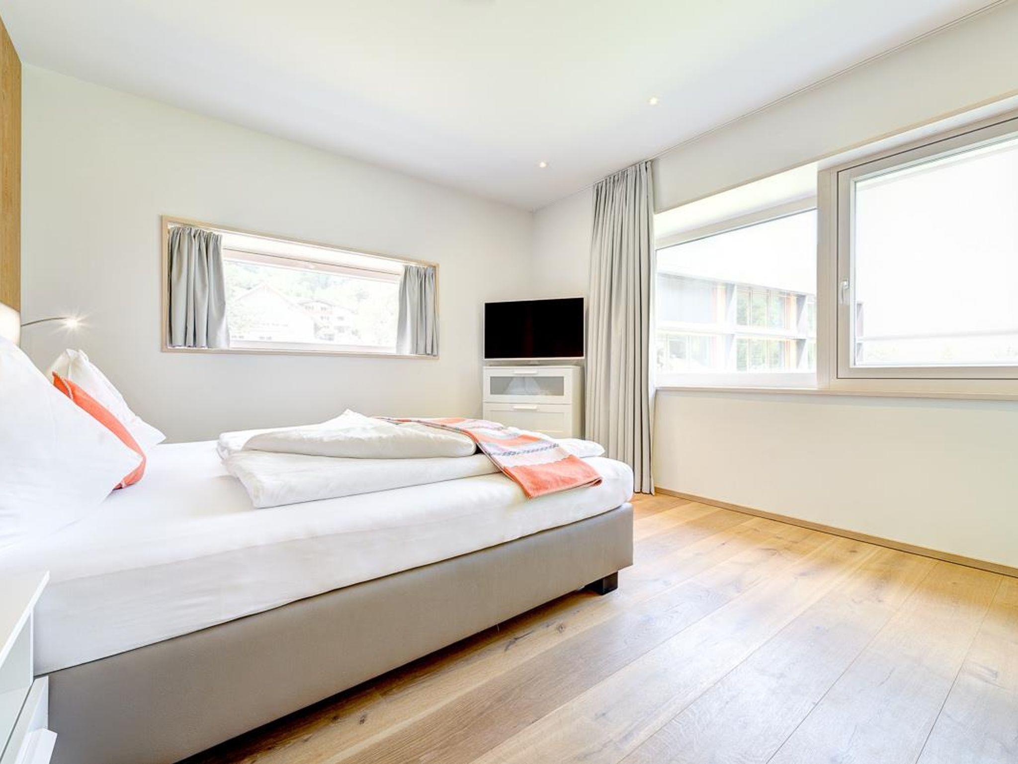 In diesem Zimmer können Sie die Sonne so lange genießen, bis sie hinter den Bergen des Brandertals untergeht. Durch die riesige Glasfront haben Sie auch vom Bett aus einen wunderbaren Blicke auf den Brandner Hausberg Mottakopf.