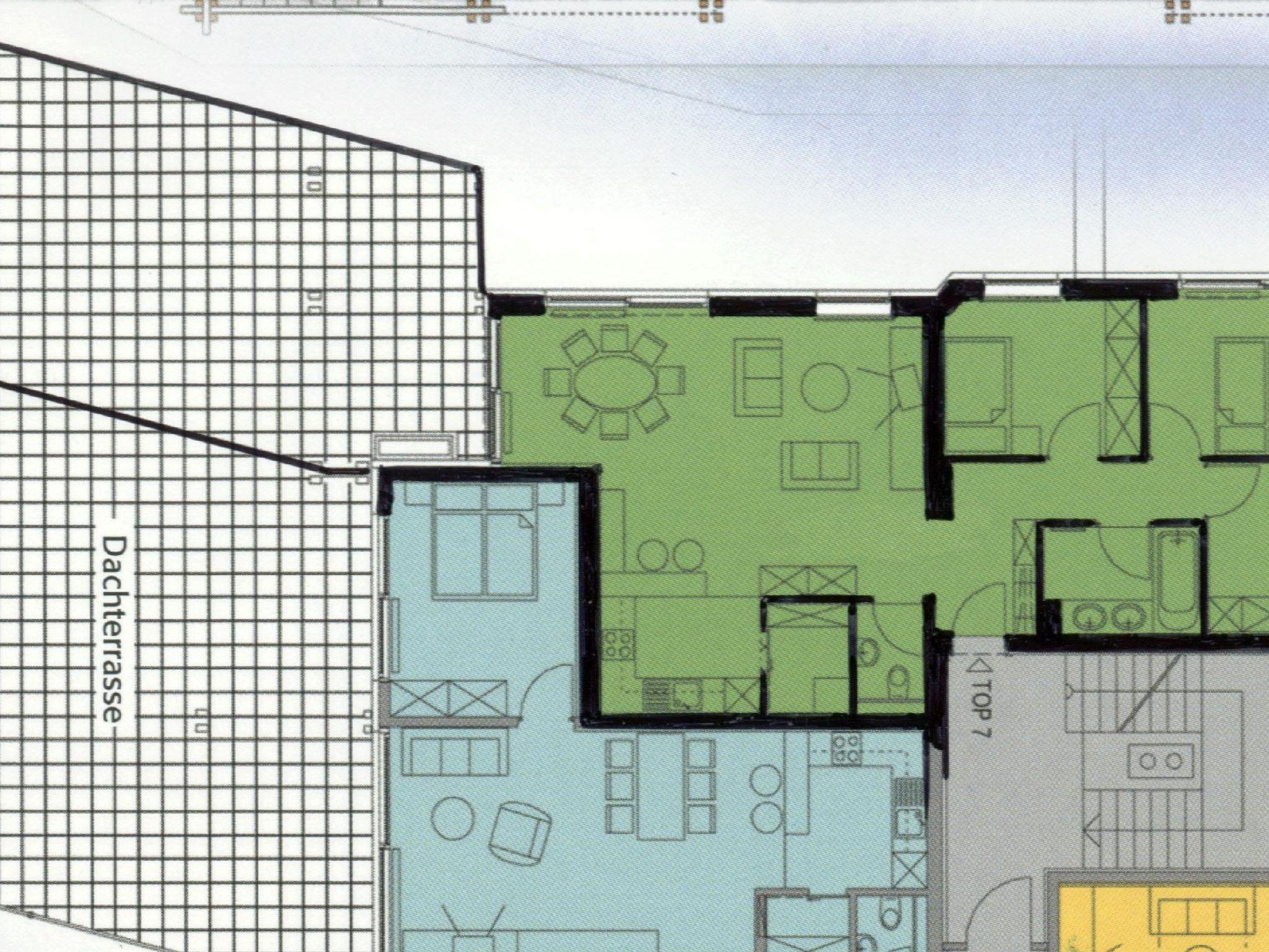 Die Wohnung (90 m²) hat 3 Schlafzimmer: 2 mit Doppelbett und 1 mit Hochbett. Außerdem ist die Wohnung ausgestattet mit 2 Badezimmer: 1 mit Dusche/Bad Kombination, separate Toilette und 1 mit Dusche mit Toilette. Die offene Küche hat einen Kühlschrank mit Gefrierfach, einen Geschirrspüler, ein Ofen und eine Mikrowelle. Im Vorratszimmer gibt es eine Waschmaschine und ein Trockner. Internet Radio/CD-Spieler, Apple TV, DVD und Flach TV sind auch vorhanden. Die Wohnung besitzt eine riesige Terrasse (50 m²) - mit Gartenmöbel - und mit herrlichem Blick auf die Seekopf, Zirmenkopf, Felsenkopf, Schesaplana, Mottakopf und Panüelerkopf. Rauchen nur auf die Terrasse, nicht in der Wohnung! Haustiere sind nicht erlaubt.