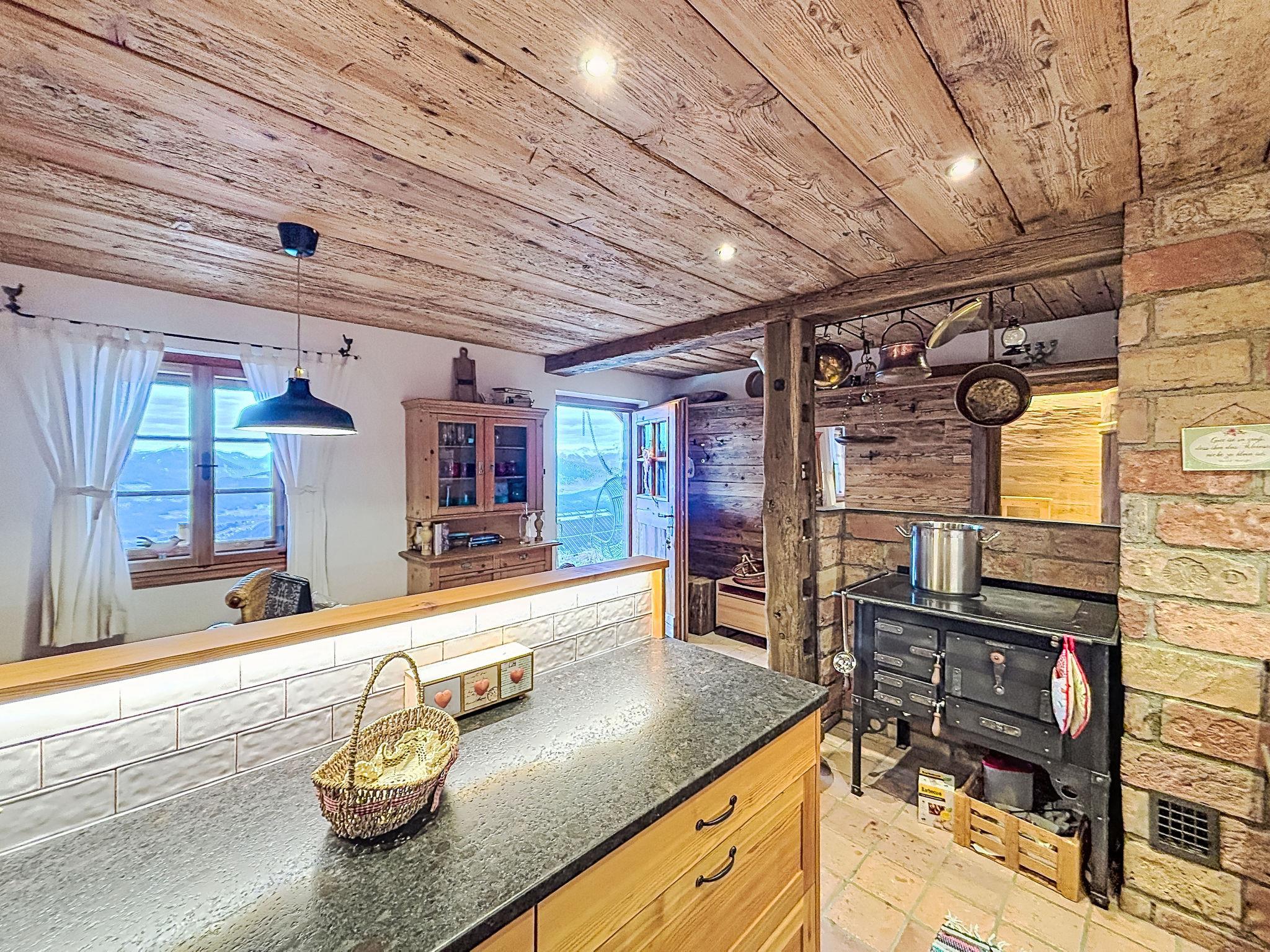 "Mirnock-Chalet", 2-room apartment 40 m2, on the ground floor. Cosy furnishings: living/dining room with dining nook and wood-burning stove. Exit to the terrace. 1 double bedroom. Open kitchen (oven, dishwasher, Gas stove, 4 gas rings, toaster, kettle, freezer, electric coffee machine). Shower/WC. Heating. Parquet floors. Terrace. Terrace furniture. Very beautiful panoramic view of the lake and the valley. Facilities: washing machine, dryer, safe, iron, logs (free). Internet (WiFi, free). Please note: non-smokers only.
