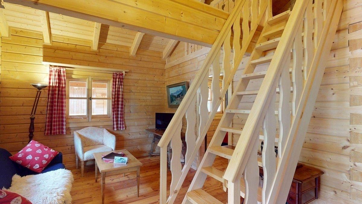 1 ausziehbare Schlafcouch im Wohnraum für 2 Personen oder Doppelbett im Loft (Aufgang über steile Treppe mit Dachschräge)
