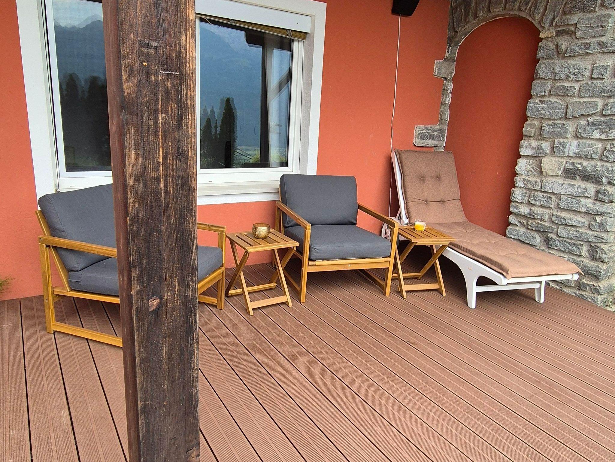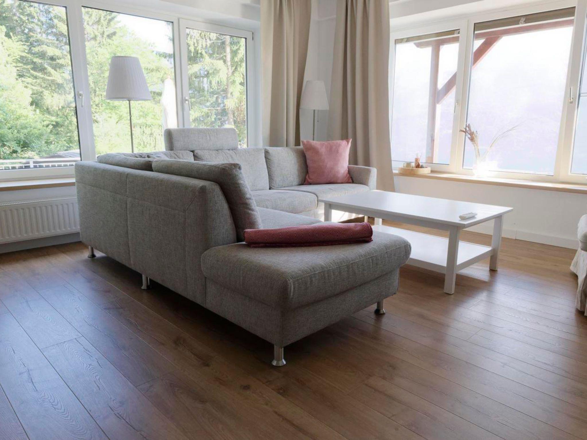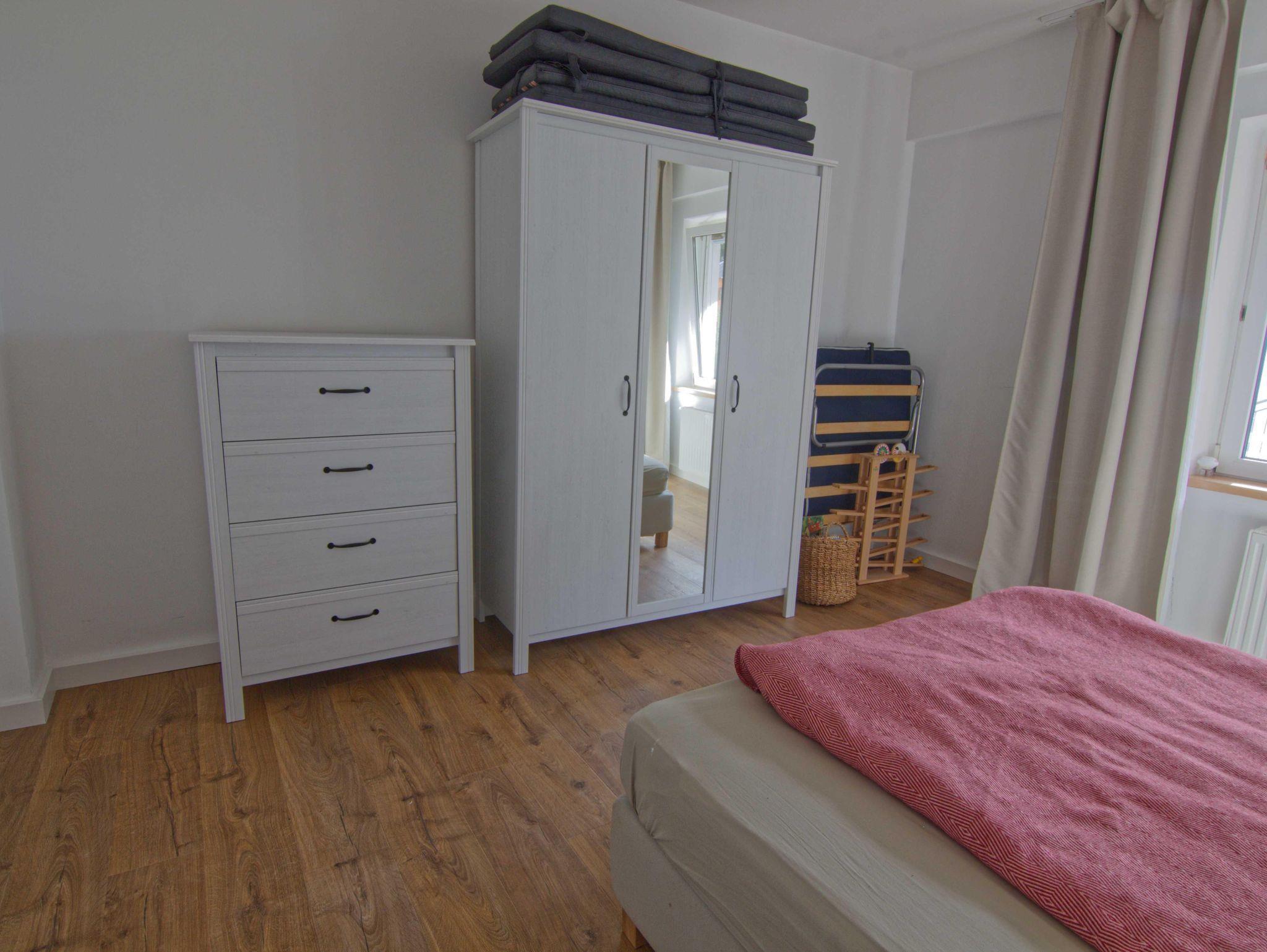 Tolle Erdgeschosswohnung mit riesiger Terrasse/Garten und ca. 45 m² großem Wohn-Esszimmer mit offener Küche. 2 Schlafzimmer mit je 1,60 m breitem Boxspringbett. Küche mit Komplettausstattung.