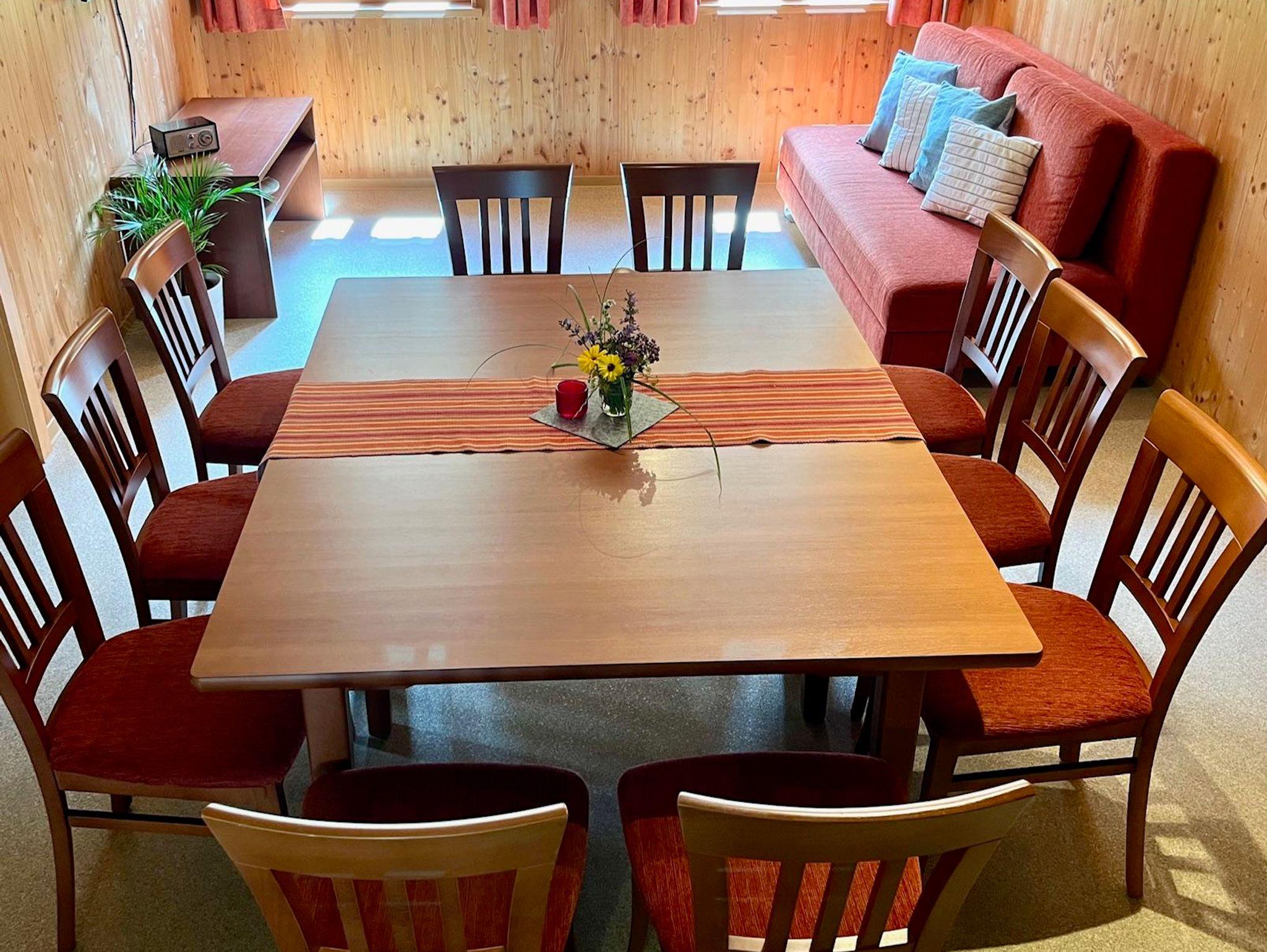 Genießen Sie einen guten Bergschlaf im einem Doppelzimmer mit Infrarotsauna, sowie einem Doppelzimmer mit Zusatzbett. Die großzügige Wohnküche steht für gemeinsame Essen und gemütliche Familienzeit. Zusätzlich stehen zwei Duschen mit WC zur Verfügung.