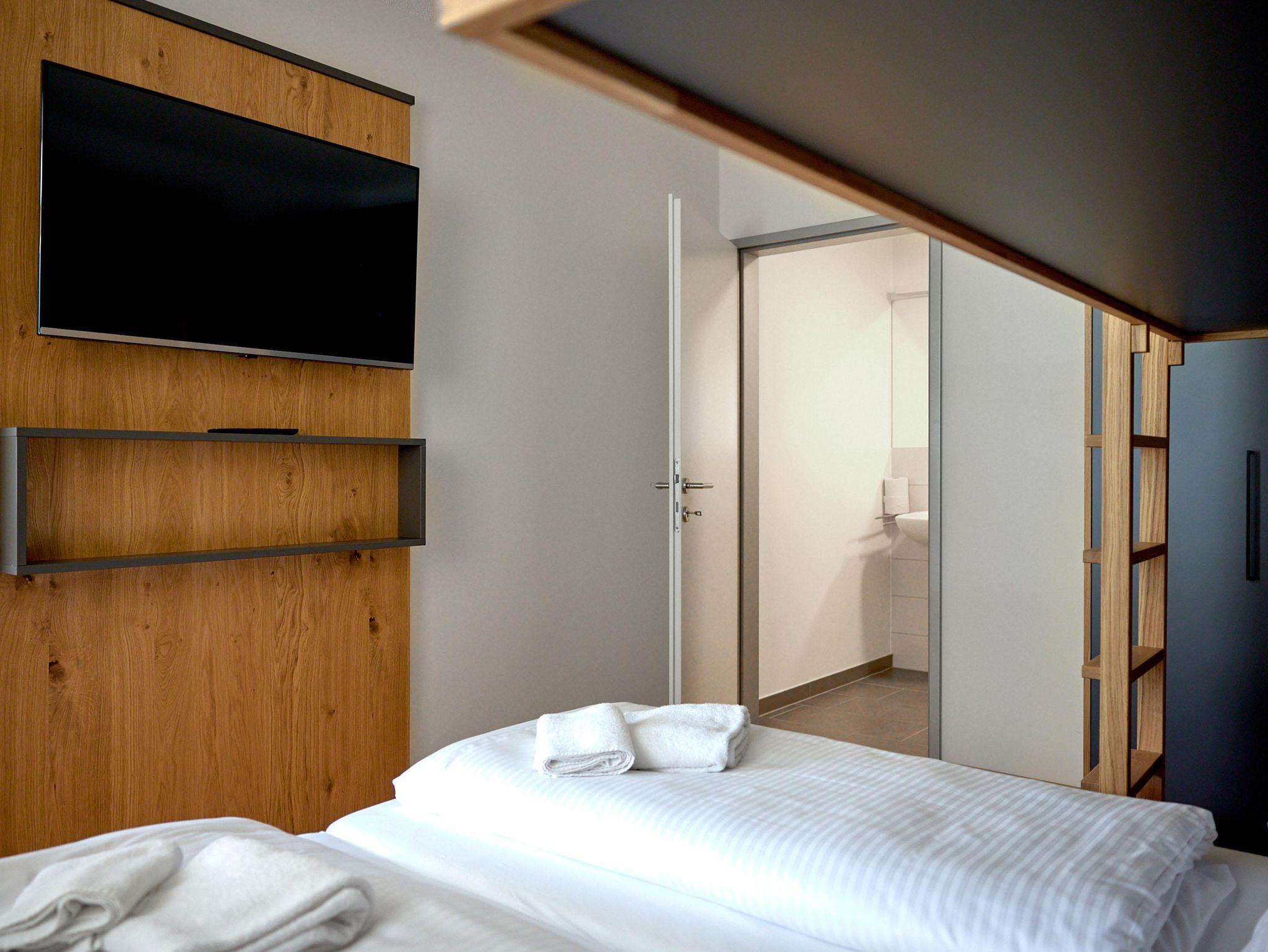 Willkommen im Zapfig Living Apartment 13, Deinem perfekten Rückzugsort für einen erholsamen Aufenthalt. Die 80 m² Unterkunft im 1.Stock bietet ein gemütliches Wohnzimmer inkl. ausziehbaren Kingsizebett mit Smart-TV, 2 Schlafzimmer (Kingsizebett+ausziehbares Einzelbett+Smart-TV) sowie eine voll ausgestattete Küche. Die 2 Badezimmer verfügen über Dusche und WC. Genieße den Komfort einer eigenen Unterkunft+entspanne in alpiner Umgebung. Vom Balkon mit Liegenstühlen besteht Bergblick.