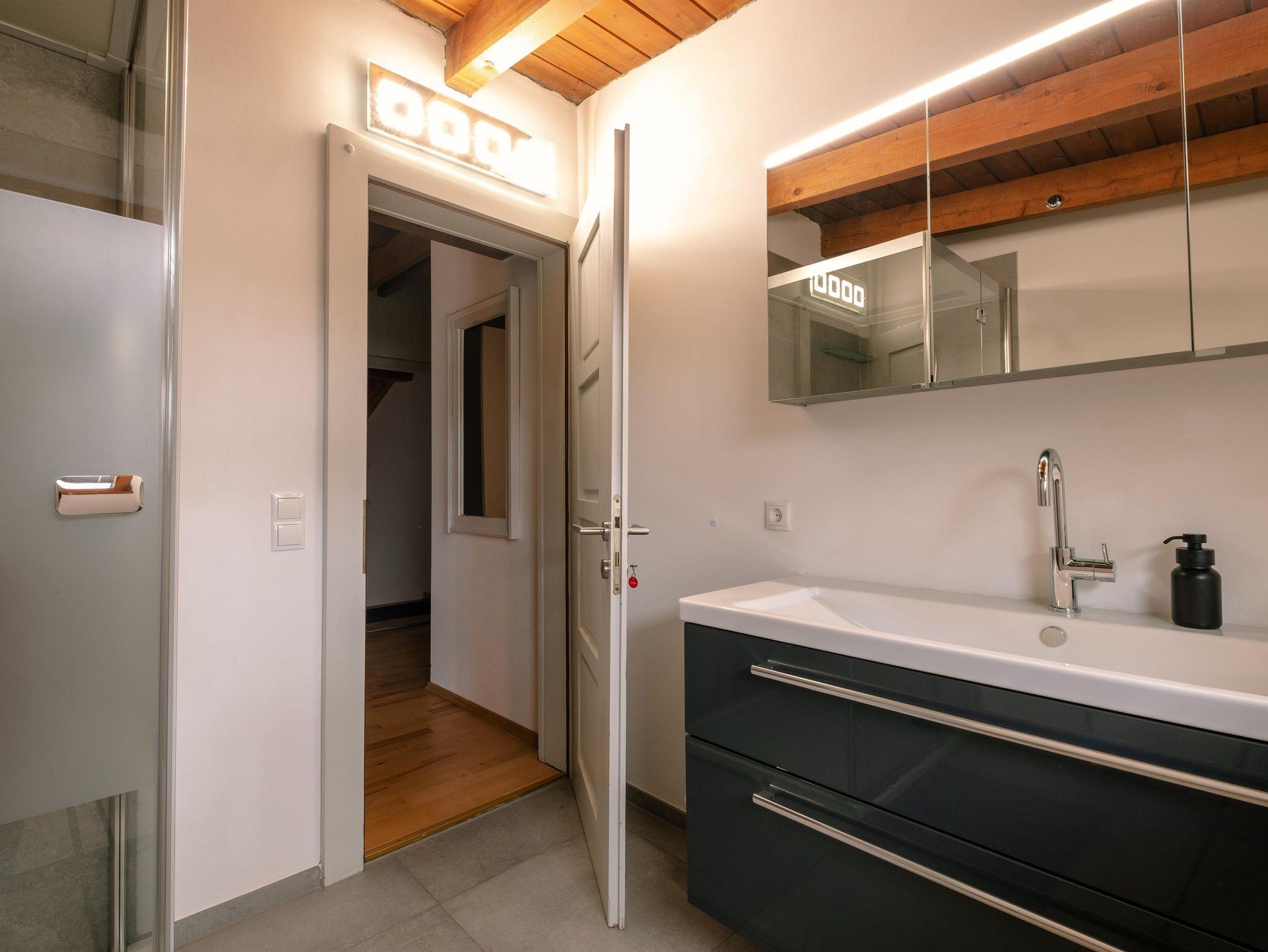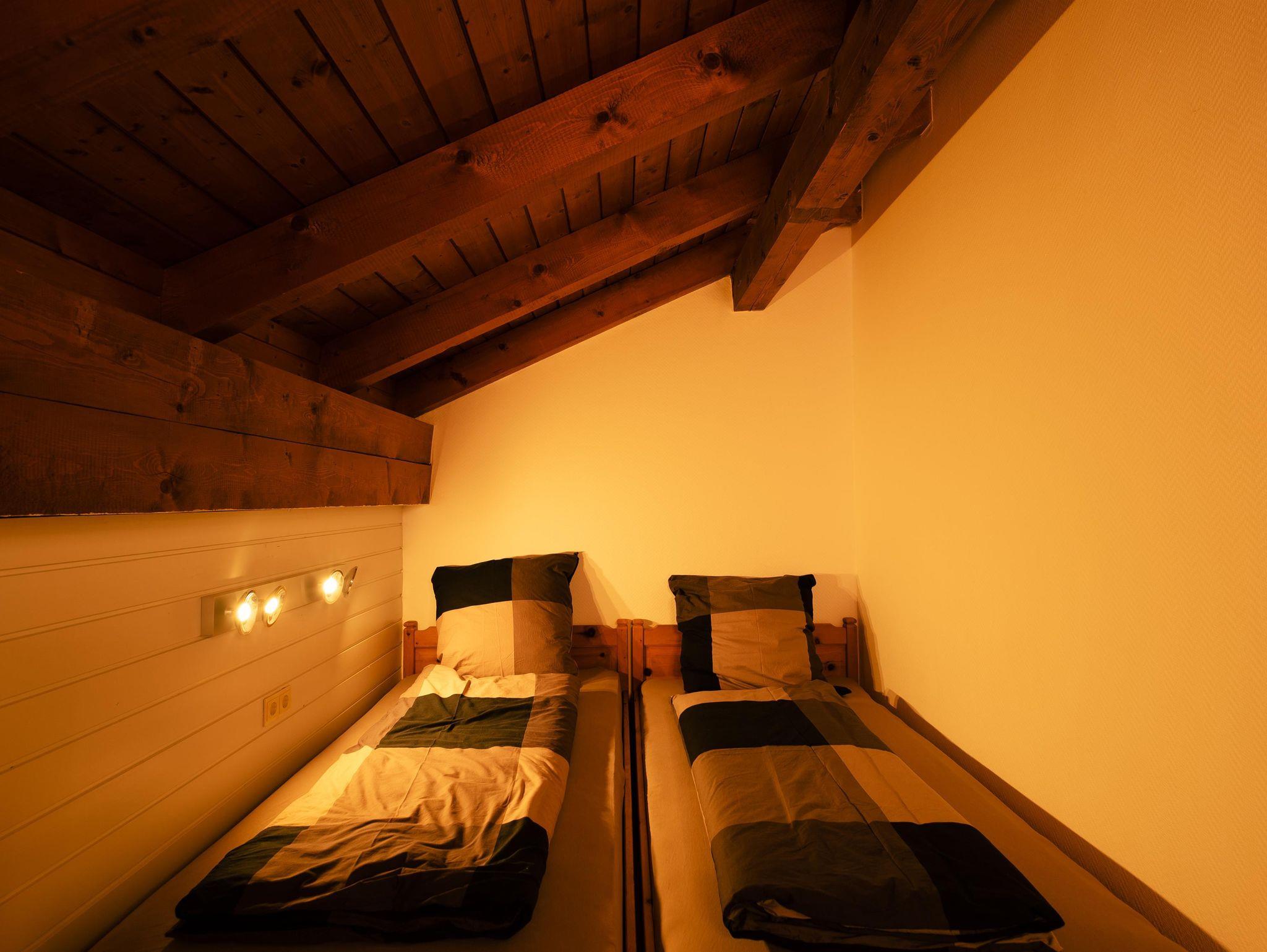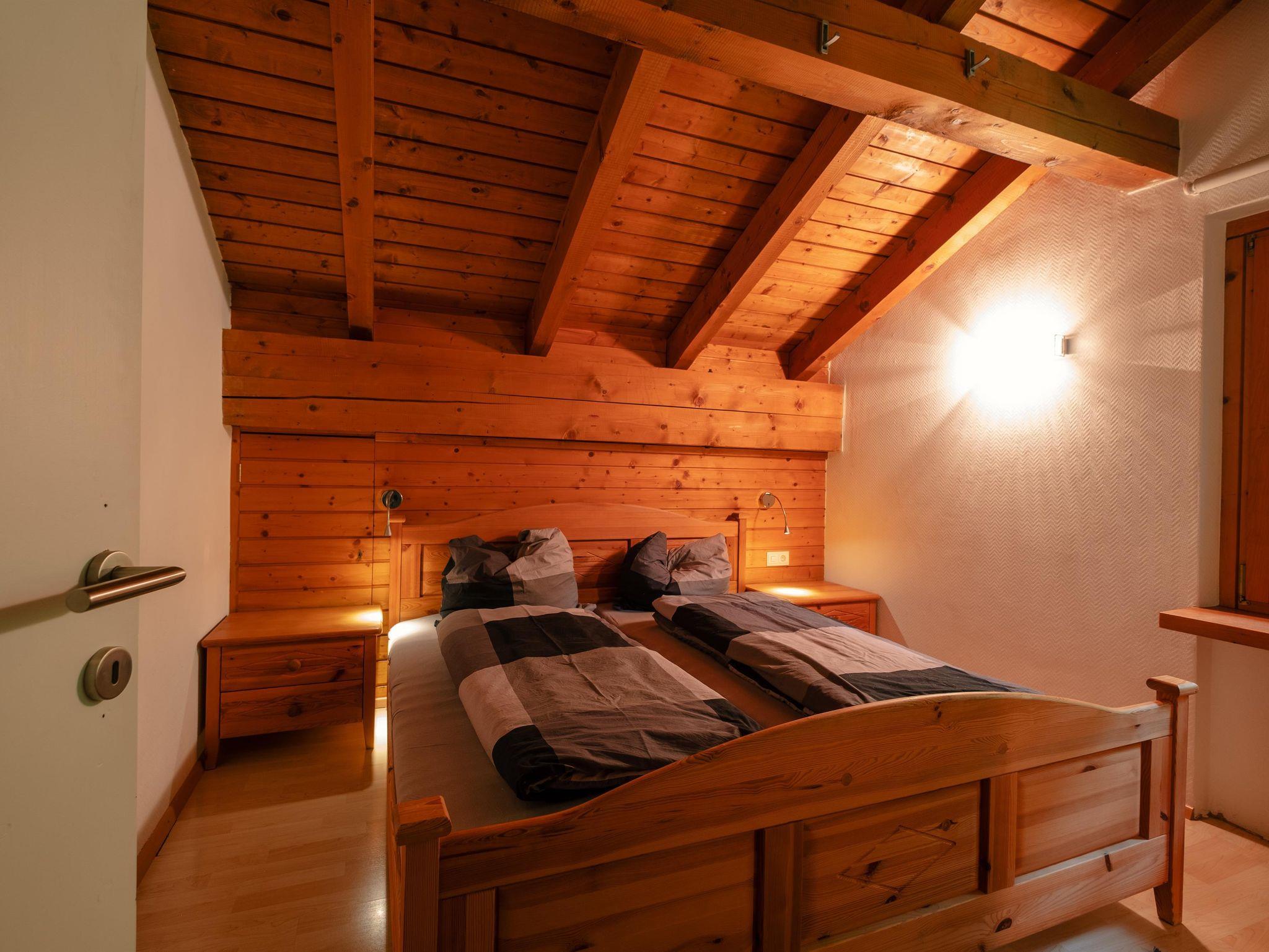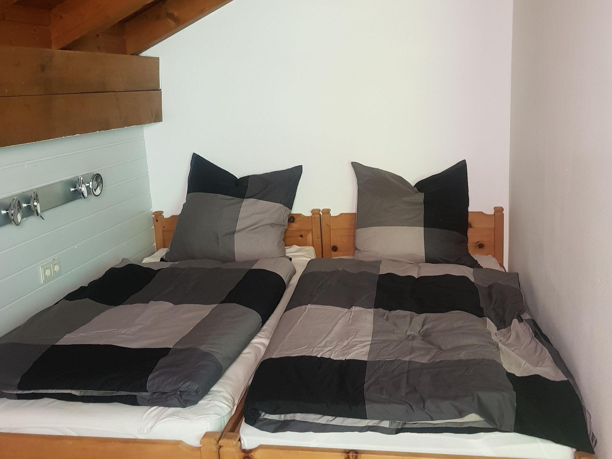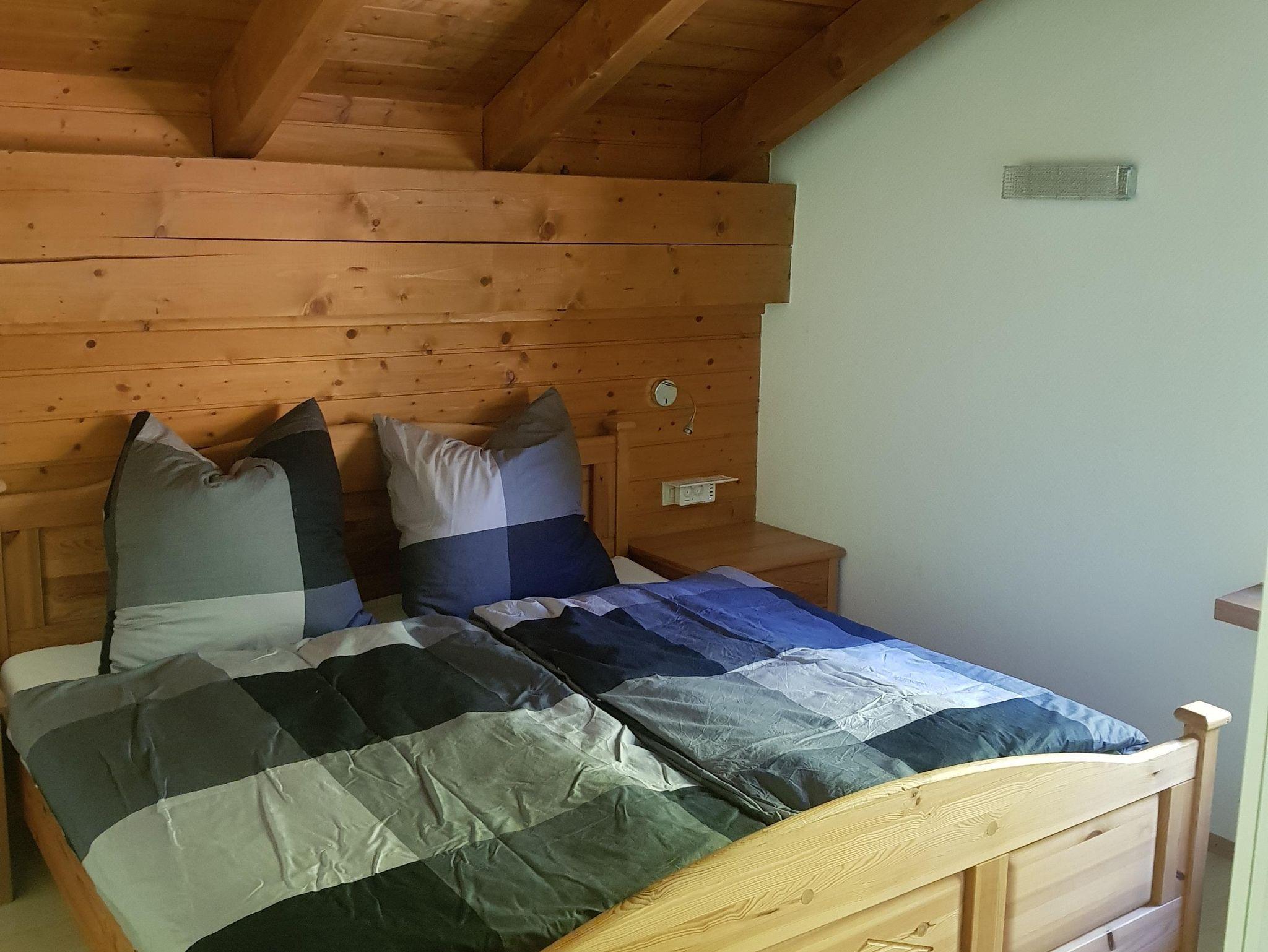 Die 3-Zimmer-Ferienwohnung im DG ist ca. 85 qm groß. Der große/offene Wohn-Essraum mit Küche ist geprägt von großen Fenstern, die nach Süden ausgerichtet sind und den Blick direkt auf den Sonnenkopf freigeben. Die hohen Dachschrägen verleihen dem Raum einen großzügigen, hellen Charakter. Der große Eichenholztisch, sowie das gemütliche Loungesofa sorgen für ein sehr heimeliges Ambiente. Vom Wohn-Essbereich betritt man den südseitigen Balkon, der zum Frühstücken/Grillen einlädt–Gasgrill und Balkontisch mit Stühlen sind vorhanden. Die Küche ist mit bestens ausgestattet. Zur Wohnung gehören zwei Schlafzimmer, beide mit Vollholz-Doppelbetten. Neben einem Bad mit Dusche und WC, gibt es noch ein separates WC. Highlight der Wohnung sind der offene Kamin im Wohn-Essraum und die Dampfdusche im Bad. Den Gästen stehen eine Sauna (Schuppen im Garten, gegen extra Gebühr) sowie Ski- und Fahrradkeller mit Skischuhheizung zur Verfügung. Jede Wohnung besitzt einen Stellplatz im Hof.