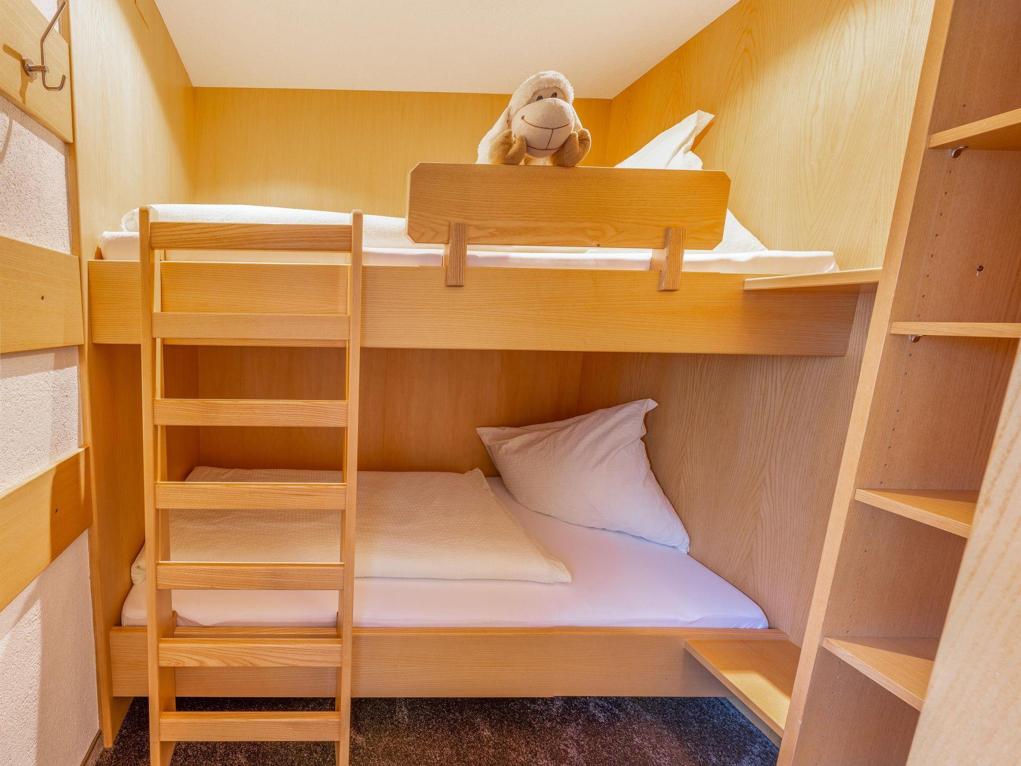 Unsere beiden Familienzimmer der Kat. D wurden speziell für Familien mit zwei Kindern im Alter von 0–12 Jahren konzipiert. Mit rund 30 m² Wohnfläche bieten sie ausreichend Platz für gemeinsame Zeit und gleichzeitig Rückzugsräume für Groß & Klein.