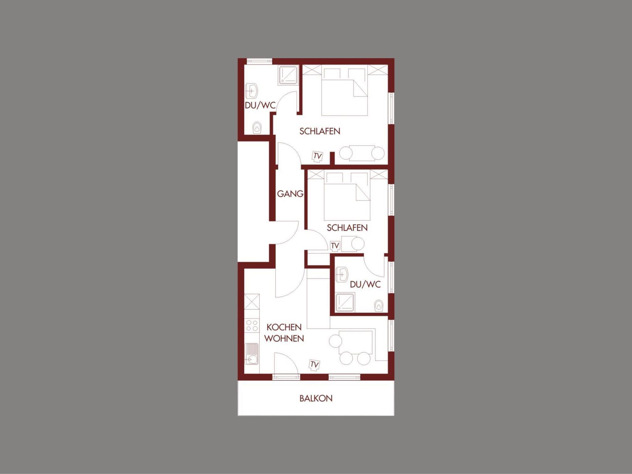 4-Personenwohnung mit Balkon, 60 m², Zustellbetten für 2 Personen möglich