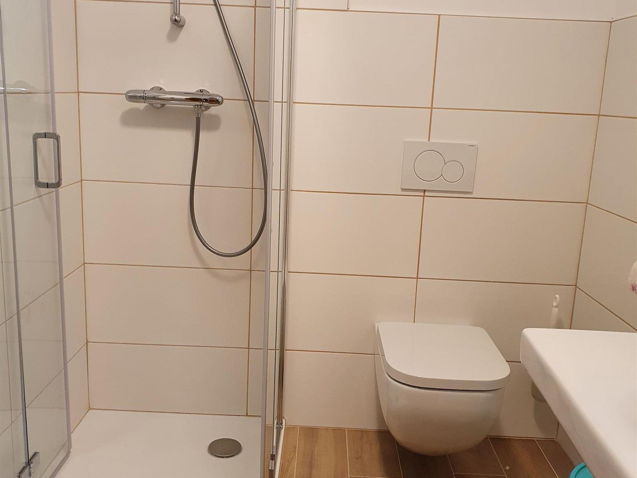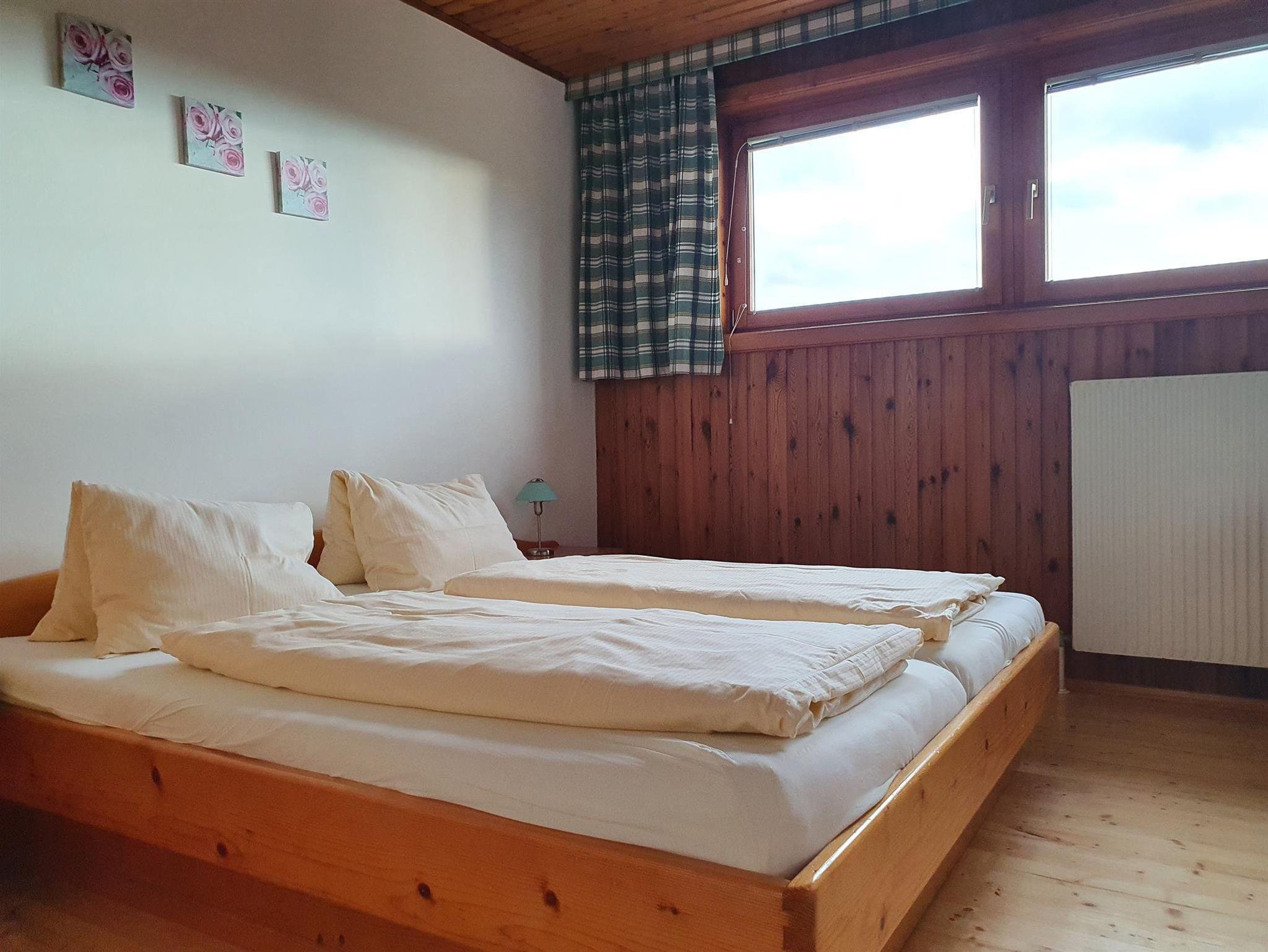 Die Ferienwohnung befindet sich im Obergeschoß, Doppelzimmer, Kinderzimmer mit Etagenbett, Wohnküche, Dusche/WC mit Balkon