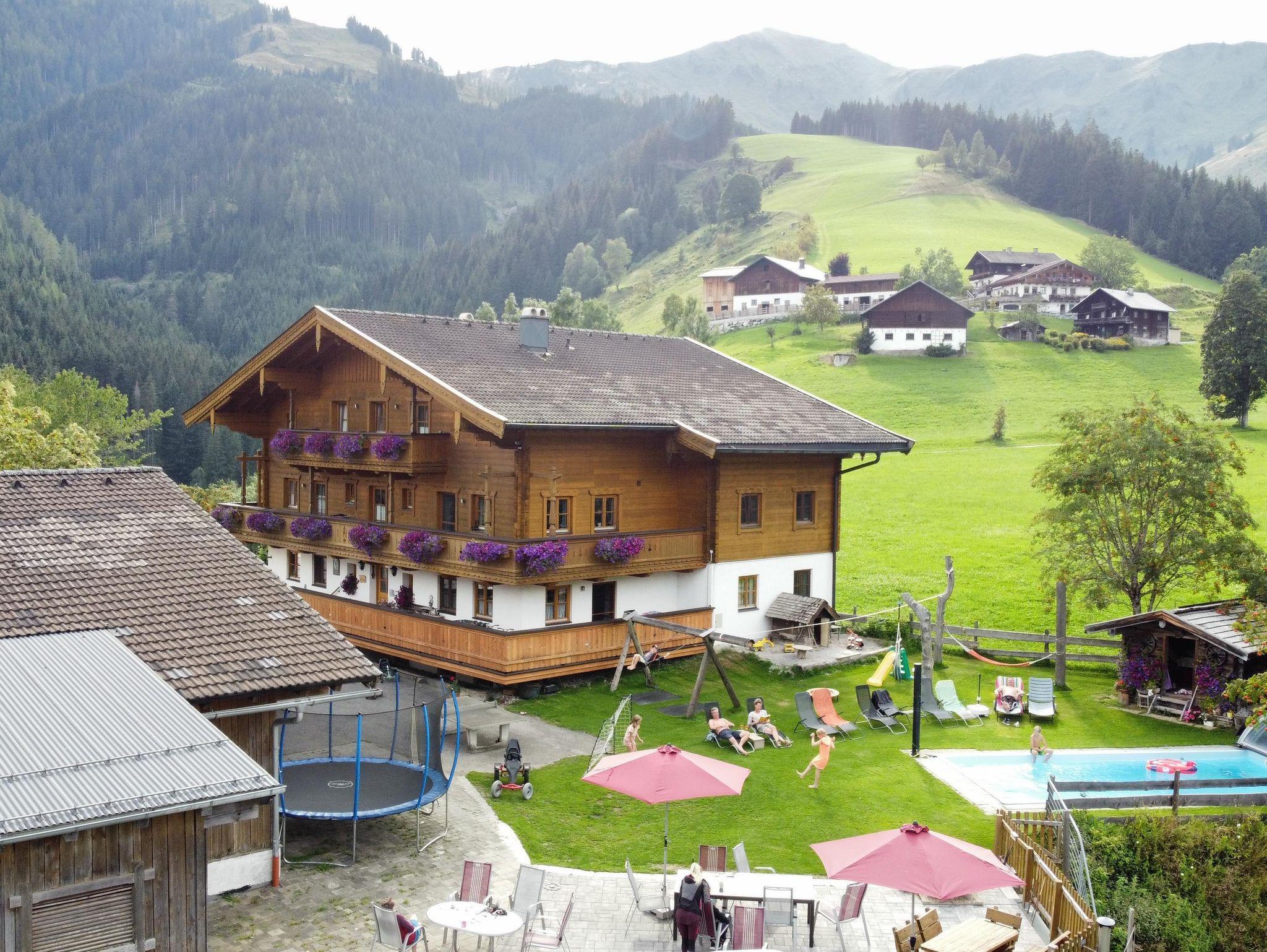 Familienfreundlicher Biobauernhof auf herrlichem Aussichtsplateau in ruhiger und sonniger Lage. Den Alltag vergessen, die Natur genießen und die Seele baumeln lassen. Unsere Tiere als gute Freunde erleben, mit uns wandern, am Abend grillen und viel Spaß beim Spielen haben. Es erwartet Sie: Sonnenterasse, Liegewiese,Hängematte, Grillecke, Tischtennis, beheizbarer Schuhraum, Rodelmöglichkeit, Kinderspielplatz u. -wiese, Gartenhäuschen, Schwimmbecken überdacht(30 m²). Tiere am Hof/Zweitbauernhof/Weide: Katzen,Hühner,Hasen,Hund,Mutterkühe,Kälber,Pferd. Eigene Trinkwasserquelle die 1 Mal Jährlich kontrolliert wird. Komfortabel ausgestattete Wohnungen. Unser Hit: Hochkönig Card, Almwanderungen vom Hochkönig Tourismus und Brötchenservice. Das Mitbringen von Hunden ist nur gegen Anfrage und einen Aufpreis erlaubt. (20 Euro/Tag und Hund ohne Verpflegung)
