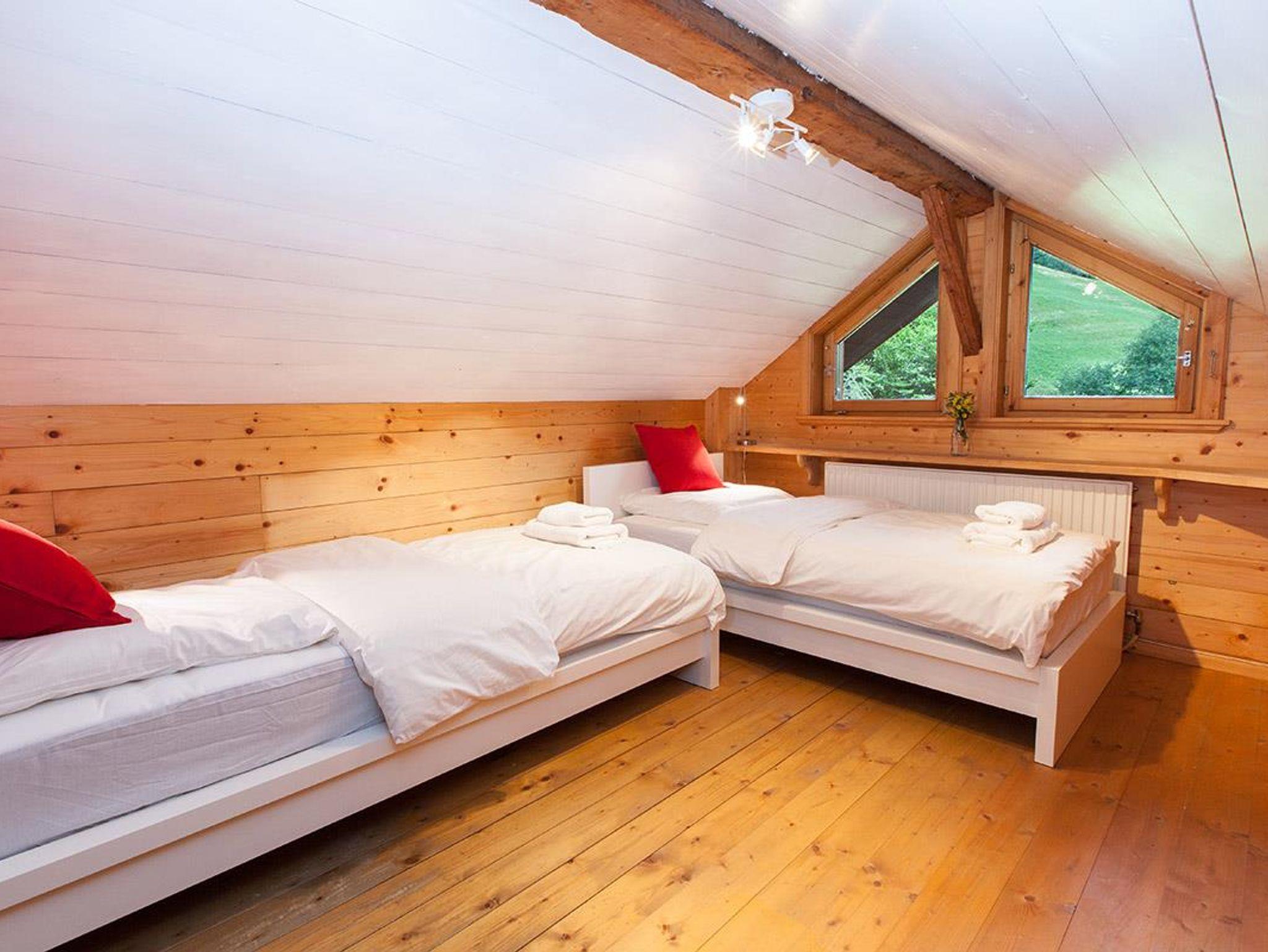 1 x Schlafzimmer mit 2 Einzelbetten je 90cm x 200 cm und schrägen Decken, maximale Deckenhöhe 195cm
