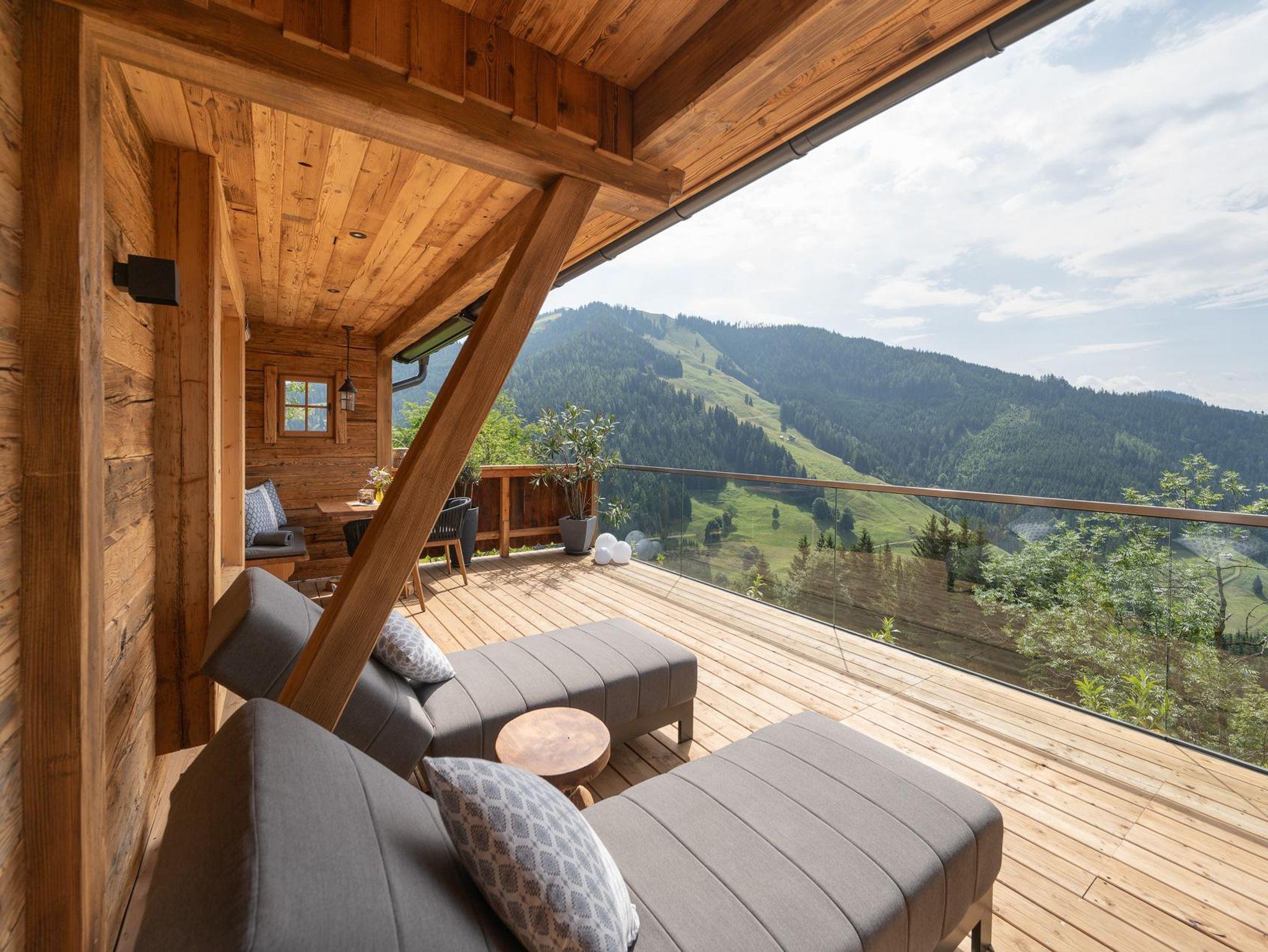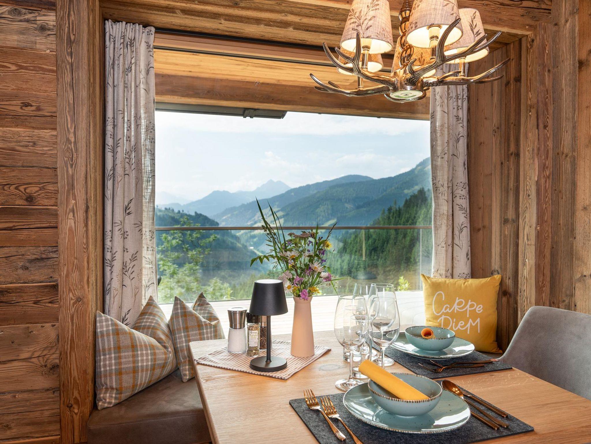 In einer wunderschönen Lage, abseits von allem Trubel, liegt auf 1.200 Meter Seehöhe mit Blick auf das Hochkönigmassiv das Highking Chalet Grünegg.