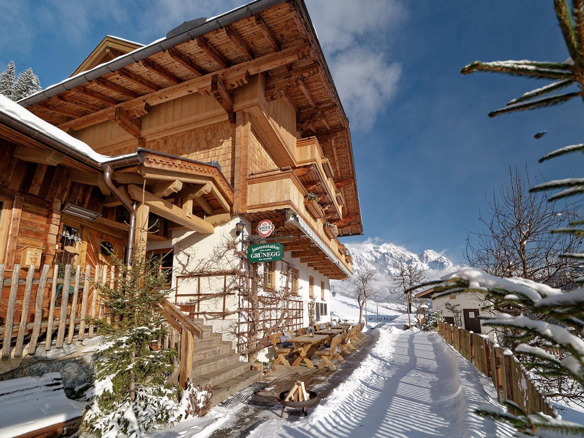Die oberhalb gelegene Grünegg Alm bietet Ihnen aus regionalen Produkten zubereitete traditionelle österreichische Gerichte und natürlich darf eine Edelbrandverkostung in der hauseigenen Hochkönig Edelbrennerei nicht fehlen.