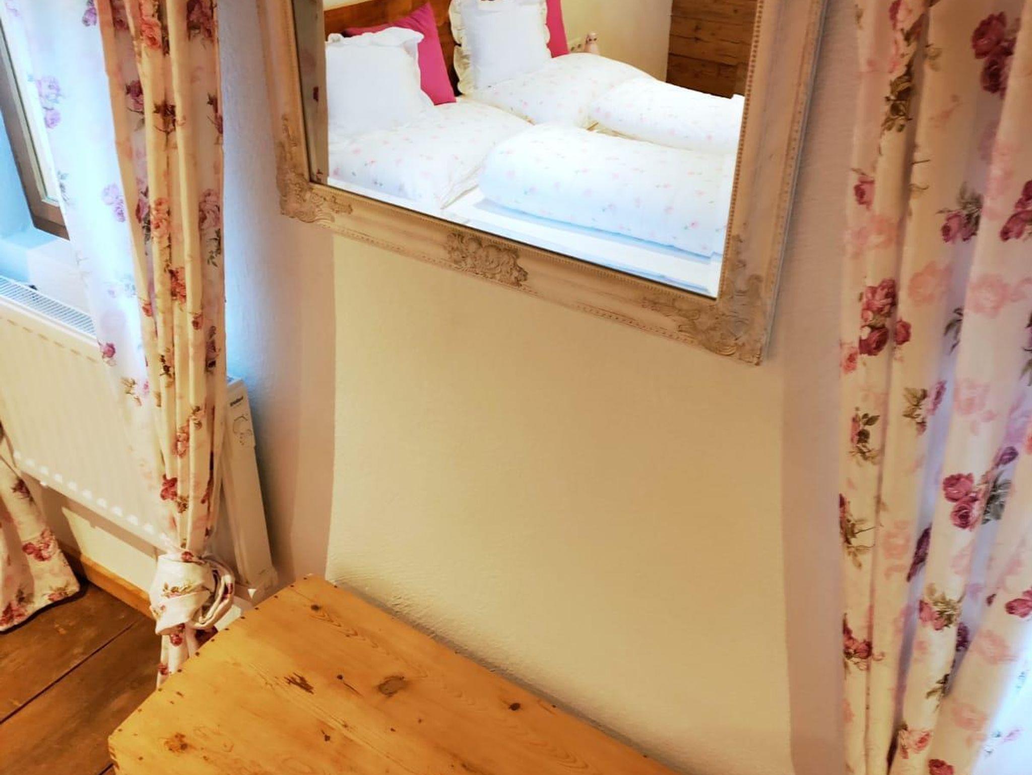 Im zweiten Stock befinden sich die anderen beiden Doppelzimmer mitDoppelbetten aus Altholz, ein Badezimmer mit Dusche/WC und ein großzügiggestaltetes Vorhaus mit Lese Ecke, Sofa und FLAT-TV