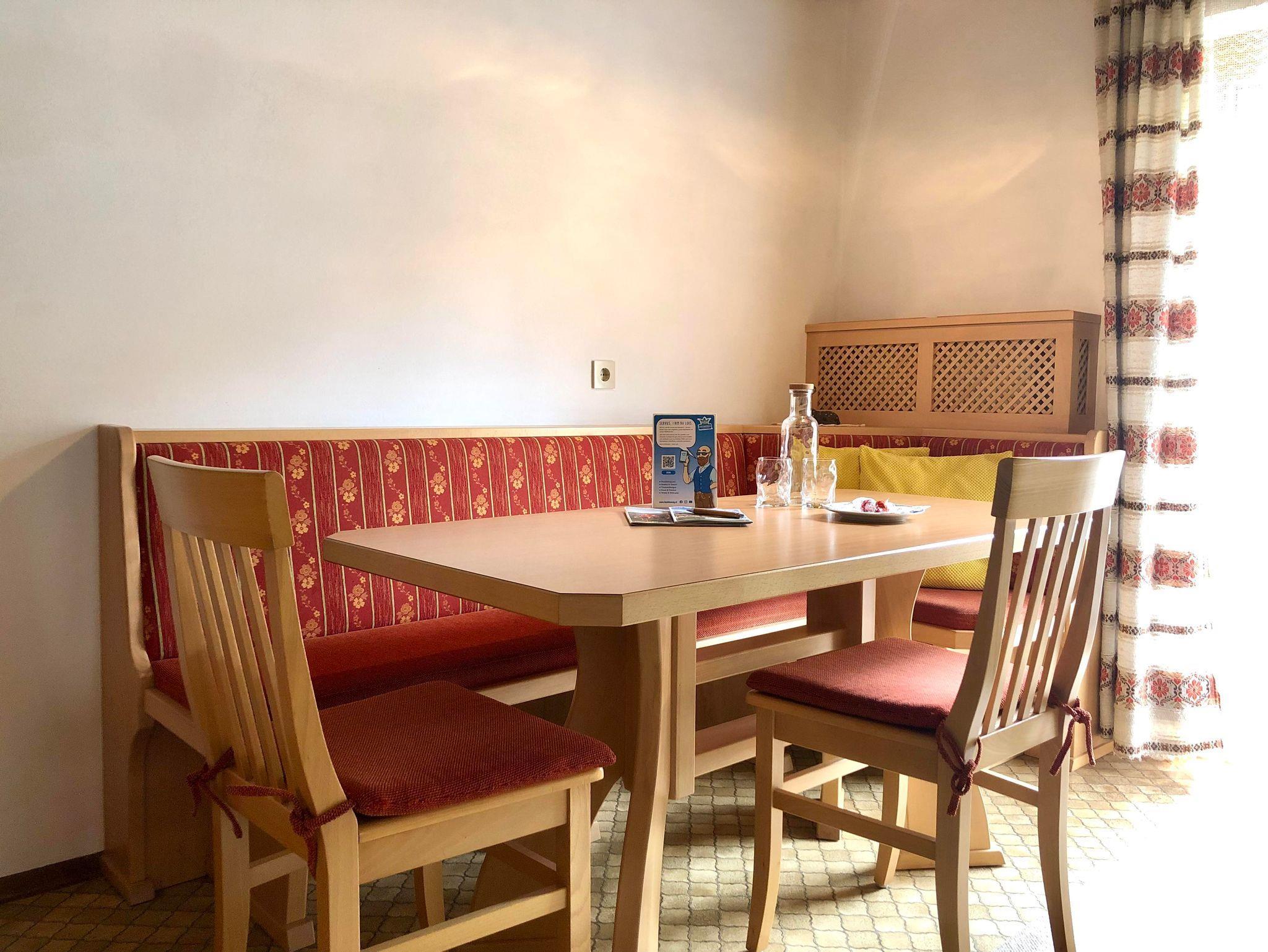 Kleiner Bauernhof , zentral gelegen , 2 Ferienwohnungen mit Wohnküche, 1-2 Schlafzimmer, 2 E-Platten ( kein Backofen ) Mikro , Kaffeemaschine Geschirrspüler , Radio , Kabel TV und Balkon. Sowie 1 Doppel- und 1 Dreibettzimmer mit Dusche/WC , TV , Radio , Kühlschrank und Balkon, Schuhtrockner . Wander bzw. Schibushaltestelle direkt vorm Haus . Skiabfahrt bis zum Haus.