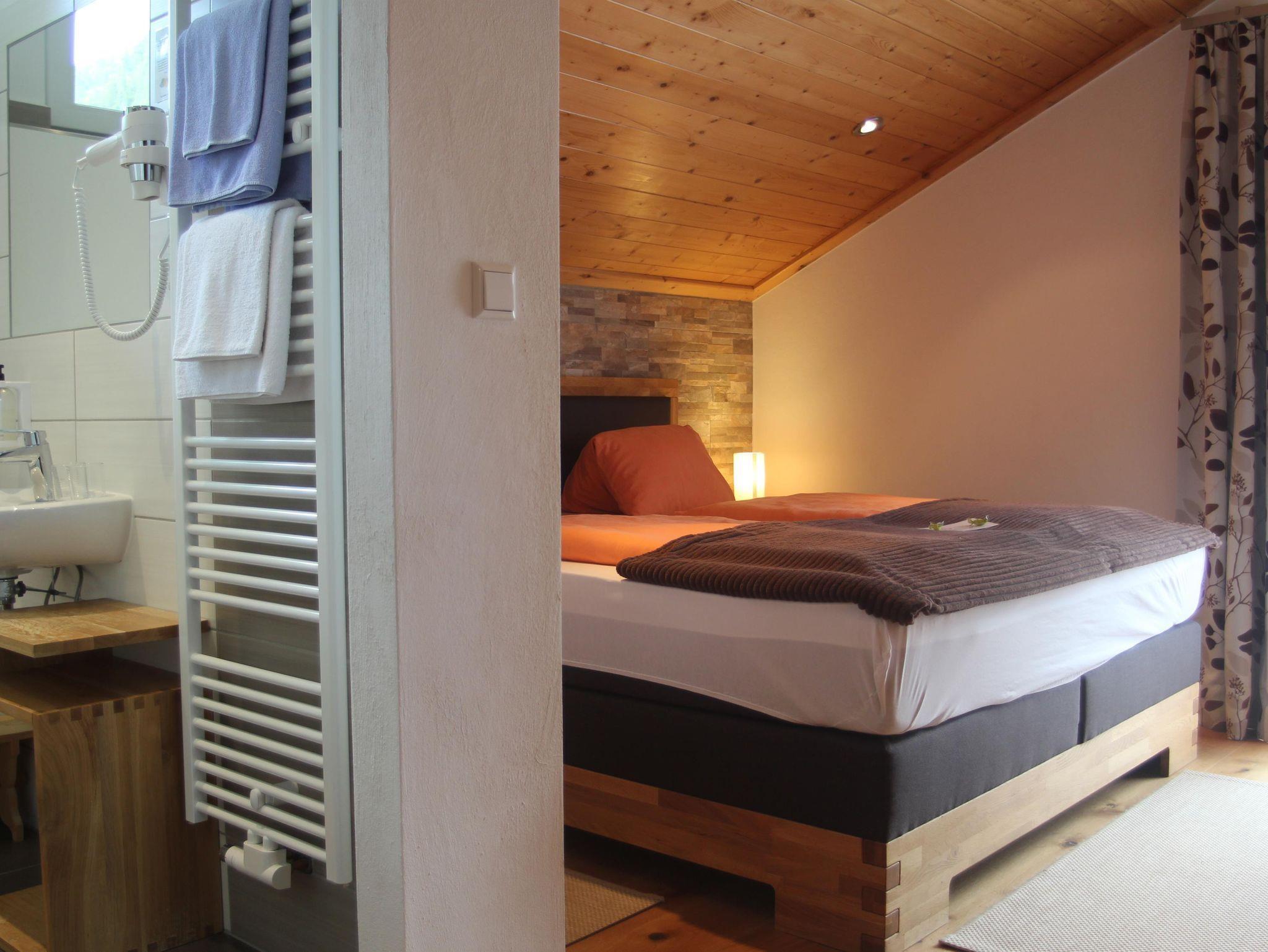 Unsere 22 m² großen Doppelzimmer sind liebevoll und individuell eingerichtet, ideal zum Ankommen, Wohlfühlen und Entspannen. Erwachen Sie mit der Morgensonne. Inklusive sind Sauna und Whirlpool im Garten.
