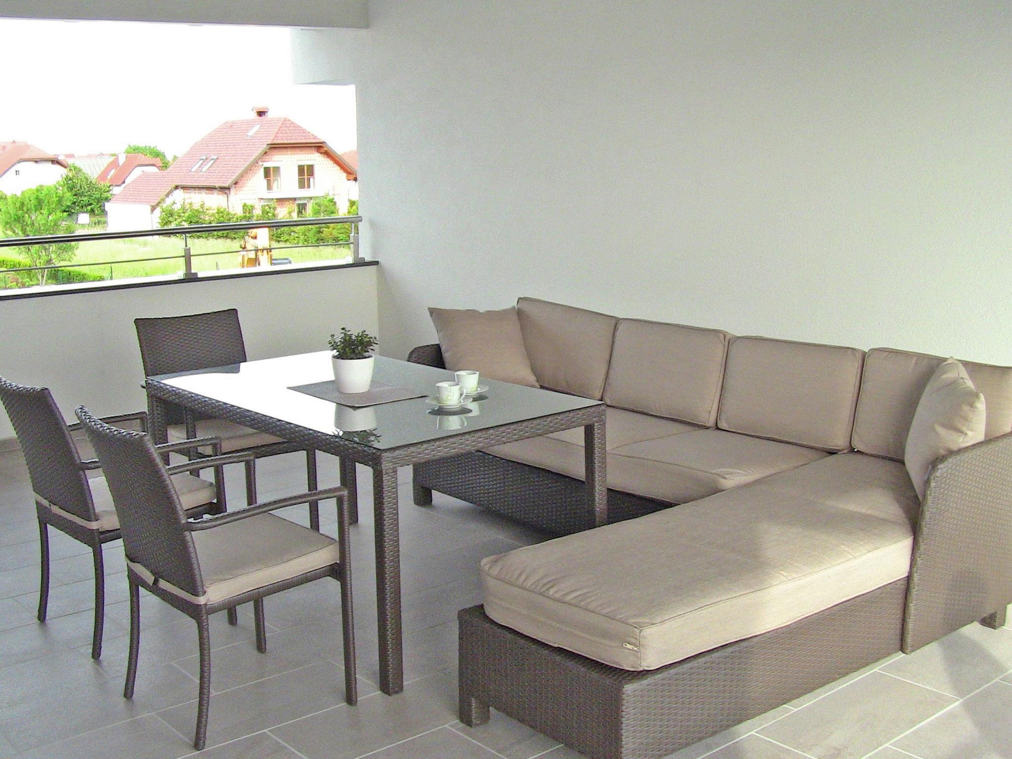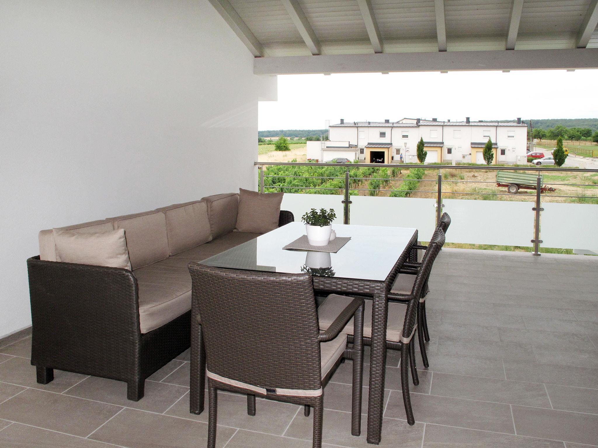 Modern, beautiful apartment block "Fuchs", built in 2015, surrounded by meadows and fields. 4 apartments in the property. 300 m from the centre of Donnerskirchen, 14 km from the centre of Eisenstadt, 66 km from the centre of Wien, in the residential district. Bus stop "Donnerskirchen B50" 350 m, outdoor swimming pool 1.5 km. Golf course (18 hole) 2.2 km. Please note: animals in the neighbourhood. The photograph shows a typical example. Additional accommodations can be booked.