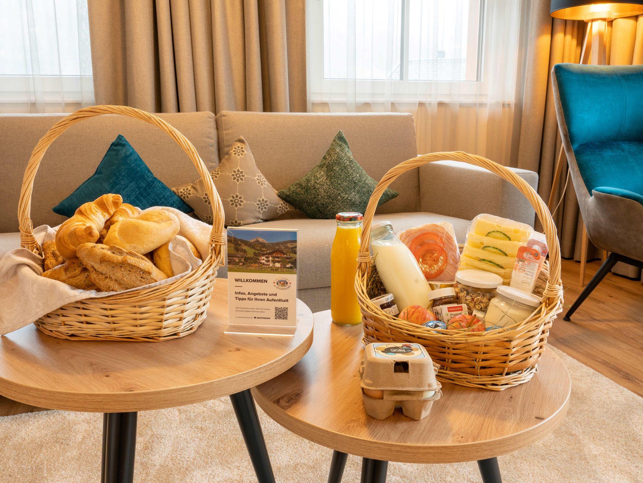 • Frühstückskörberl mit Ihren Lieblings-Frühstückszutaten