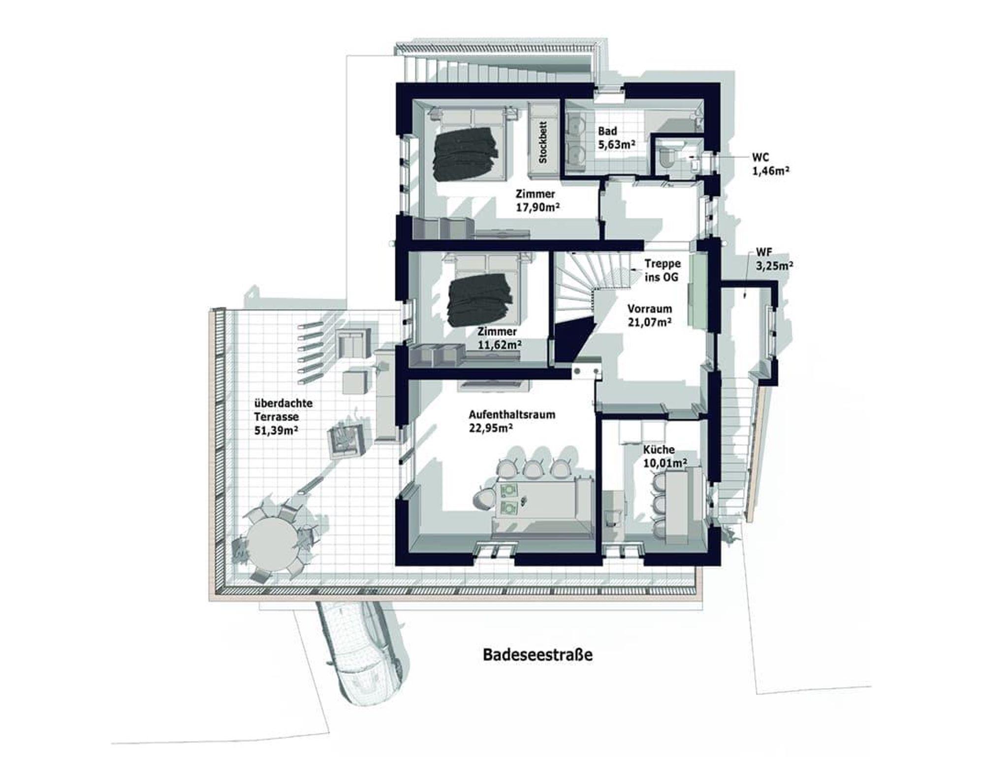 • 4 Schlafräume mit 4 Doppelbetten und 2 Stockbetten