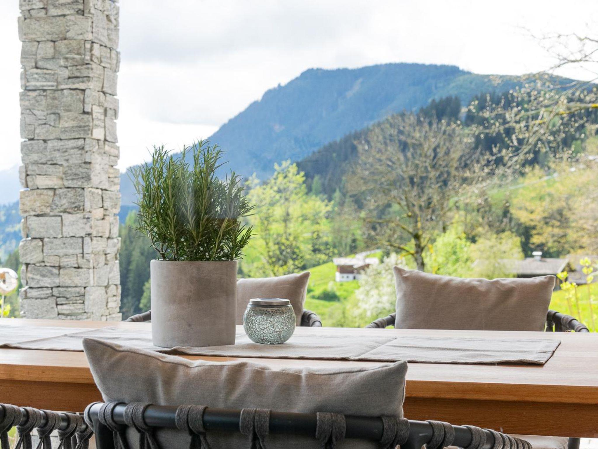 Nach einem aktiven Tag wartet Ihre private Terrasse mit einem einmaligen Blick auf den Hochkönig auf Sie. Machen Sie es sich gemütlich und genießen Sie die letzten Sonnenstrahlen des Tages – ein Sonnenuntergang zum Träumen.