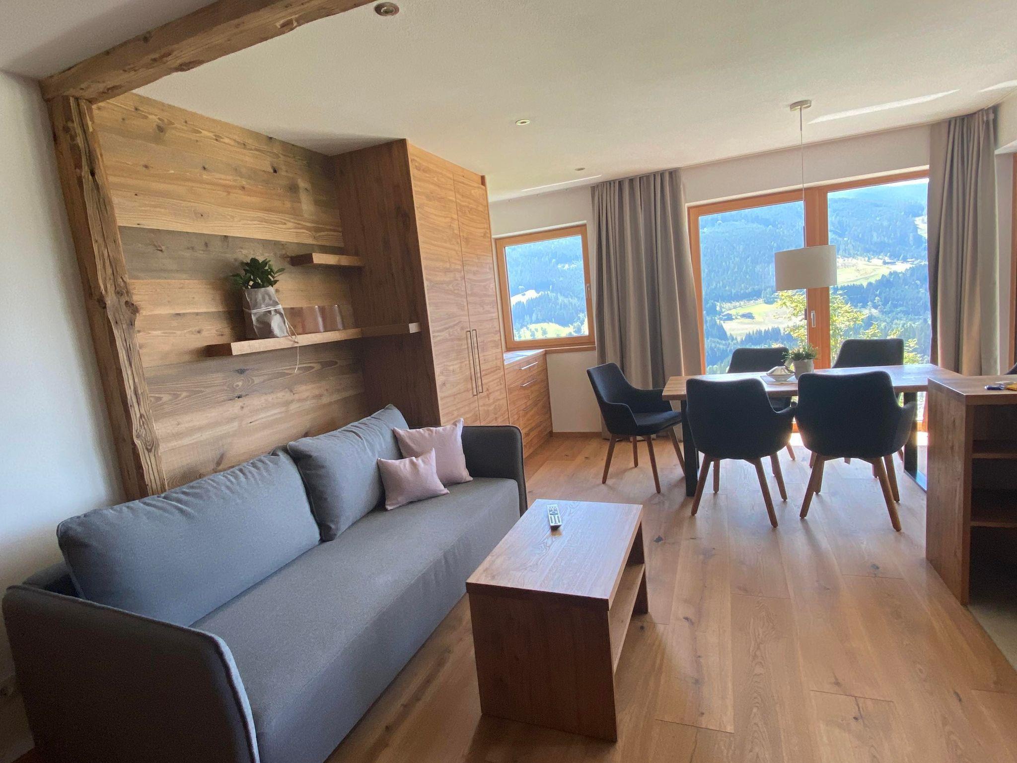 Unser großzügiges Appartement Josef im Nebenhaus des Untersüßguts bietet Platz für 1 bis 6 Personen und überzeugt mit viel Raum zum Wohlfühlen – eigene Sonnenterasse, inklusive privater Zirbensauna und Infrarotkabine für entspannte Stunden.
