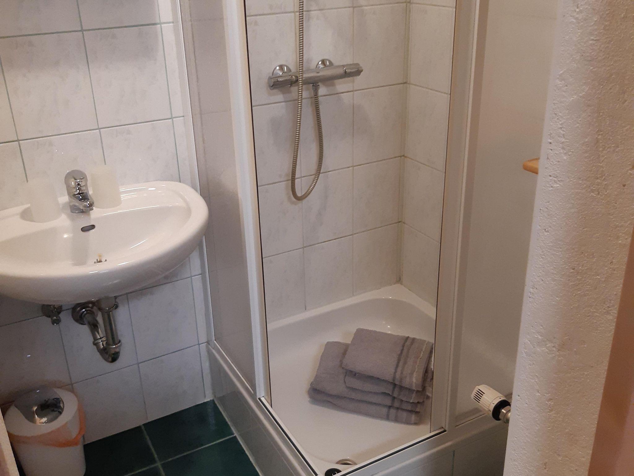 Poltlhof, Doppelzimmer, Dusche und Bad, WC, Bergseite