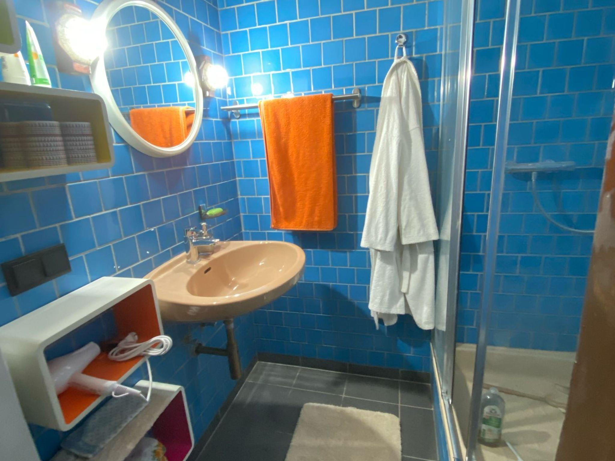 Bei der Restaurierung der Ferienwohnung in Gaas wurde großer Wert auf die Verwendung originalgetreuer Materialien gelegt. Der Unterboden wurde saniert und wir haben keine Feuchtigkeit. Wände und Decken wurden ausgebessert und mit frischem Kalkputz versehen. Kalkputz bindet auf natürliche Weise Dämpfe und Gerüche und sorgt so für ein angenehmes und gesundes Raumklima. Auch die originalen Fenster, Zwischentüren und Eingangstüren wurden sorgfältig restauriert: Sie wurden geradegerichtet, gehobelt, gespachtelt und anschließend mit reiner Leinölfarbe gestrichen in einem warmen Sepiabraun. Leinölfarbe ist ein reines Naturprodukt, das keine Lösungsmittel oder chemischen Zusätze enthält. Sie riechen den typischen frischen Kalk- und Leinölgeruch. Das Interieur und die Gebrauchsgegenstände der Ferienwohnung sind größtenteils über 30 Jahre alt, aber in hervorragendem Zustand sorgfältig gepflegt, repariert und gereinigt. So finden Sie beispielsweise einen Stabmixer aus den 1970er-Jahren, ein Besteck der Marke Berndorf, ein Kaffeeservice aus den 70ern mit fröhlichen orangen Blümchen, die Vorhänge stammen aus der Villa einer bekannten Kammersängerin. Die Sanitäranlagen sind modern, während Spiegel, Leuchten und die Badezimmermöbel authentische Stücke aus der Zeit vor über 50 Jahren sind. Insgesamt ist die Einrichtung der Ferienwohnung bunt und abwechslungsreich und schafft eine interessante, einladende und fröhliche Atmosphäre. Meine Gäste in der Ferienwohnung in Gaas werden nicht frieren. Unsichtbar aber angenehm spürbar sorgt eine moderne Fußbodenheizung für gesunde Wärme im Winter und Kühle im Sommer. Sämtliche Leitungen, Installationen und Elektrik entsprechen dem modernsten Standard. Zusätzlich finden Sie ein Infrarotpanel im Essbereich und im Schlafzimmer einen Deckenventilator.