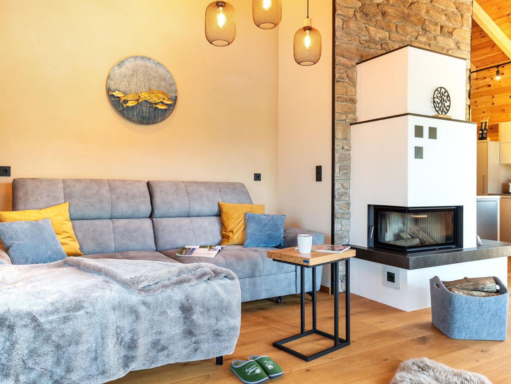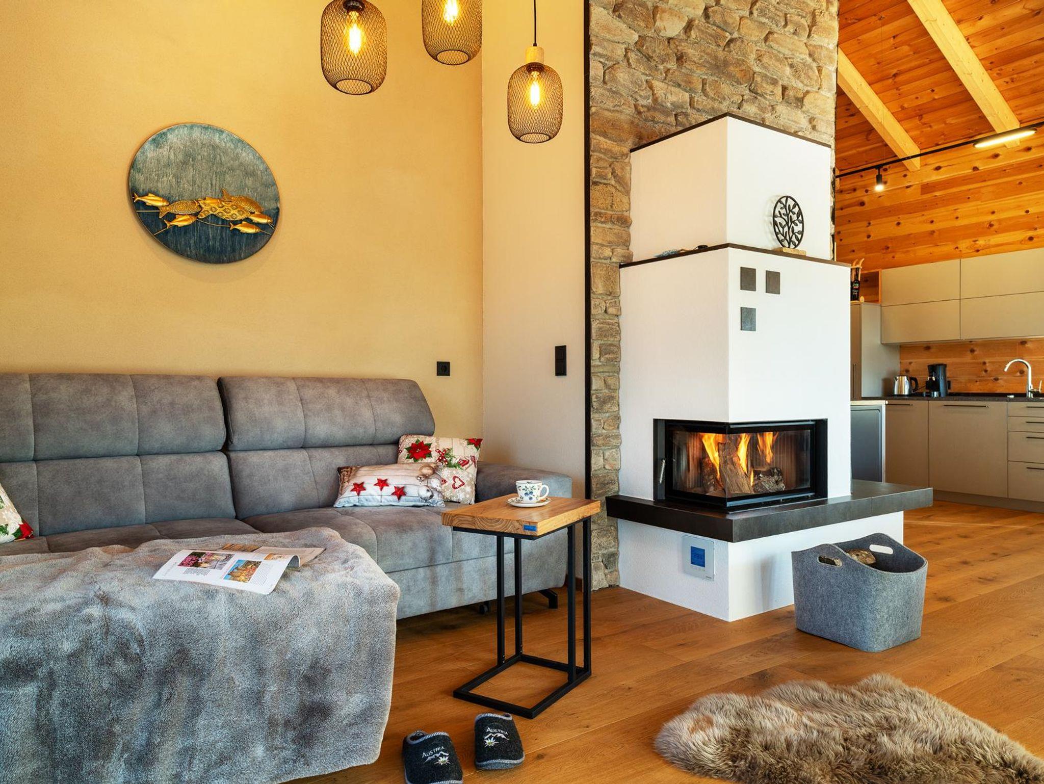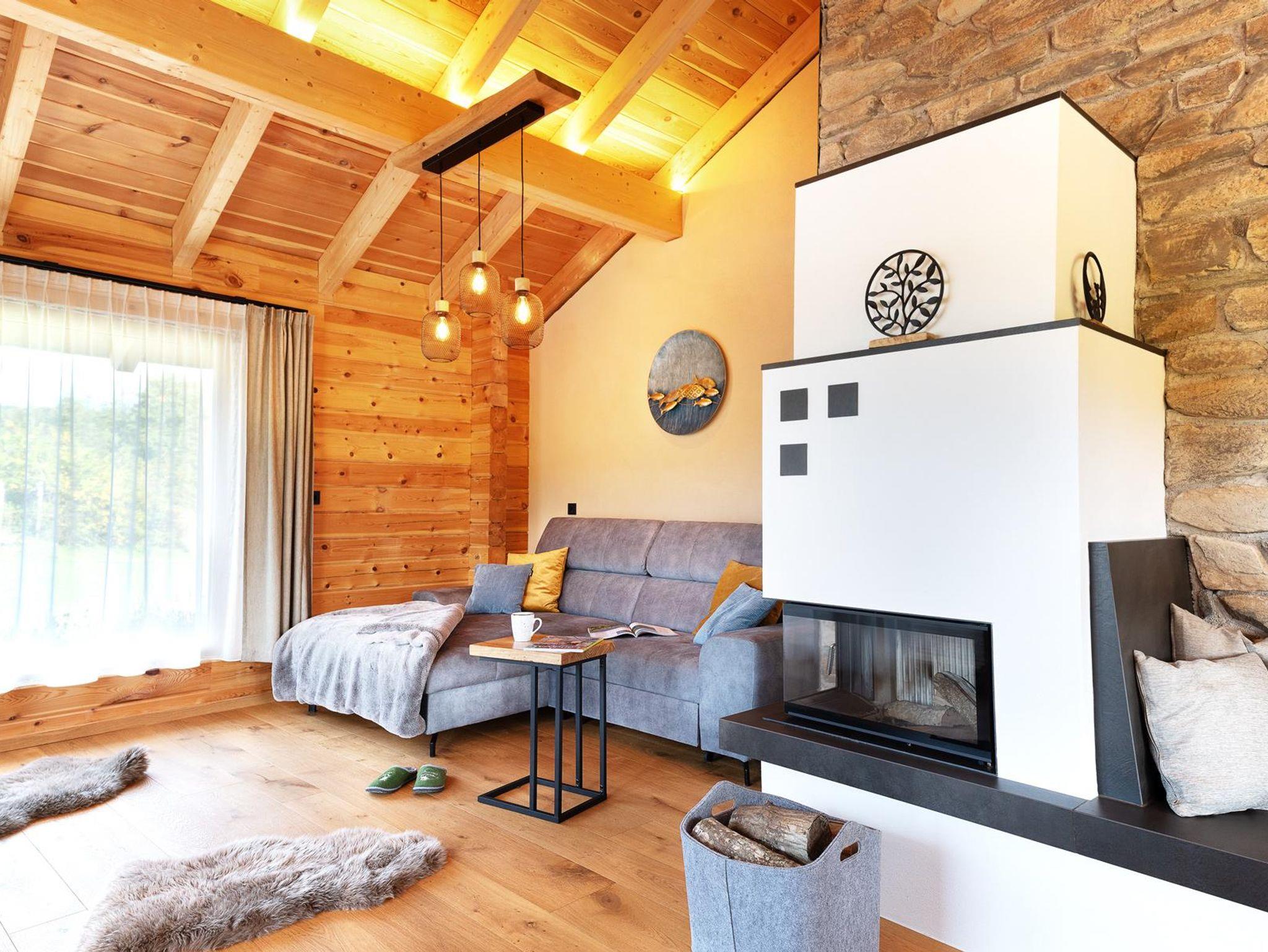 - der moderne Kachelofen, eine kuschelige Wohnlandschaft und die warme Atmosphäre vom Holz runden den Entspannungsfaktor perfekt ab.