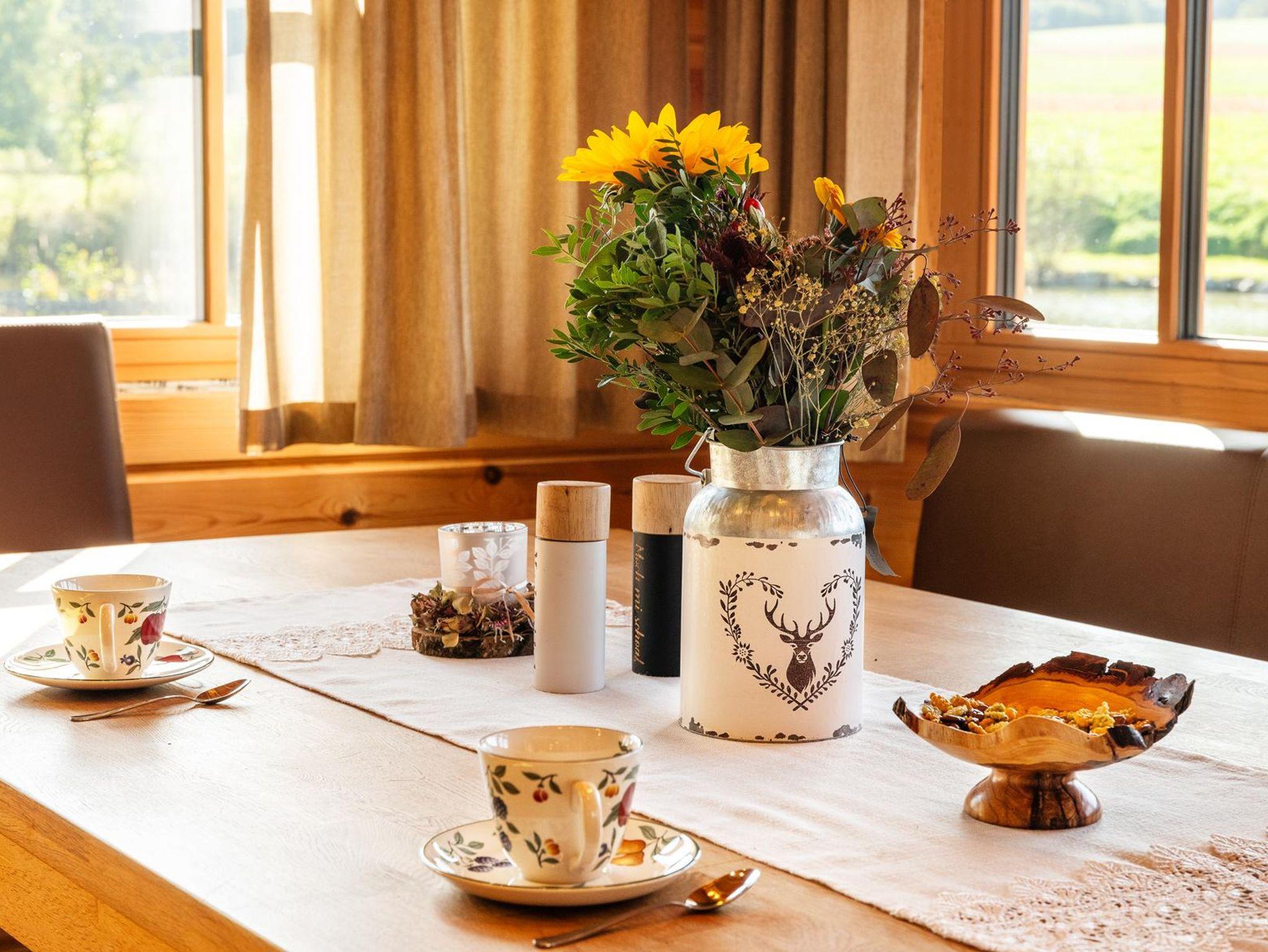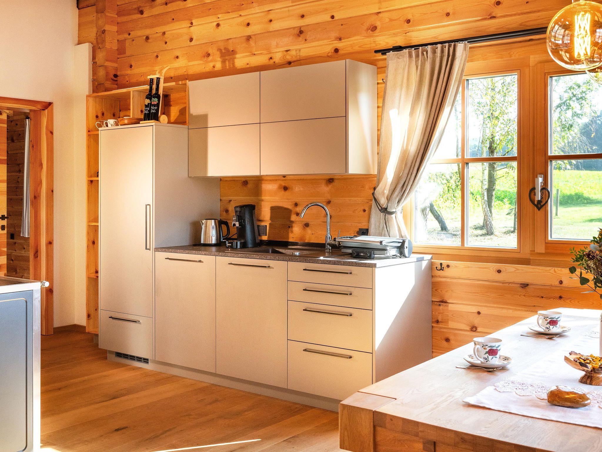 Das Chalet verfügt über zwei liebevoll gestaltete Doppelzimmer, einen großzügigen Wohnbereich mit vollausgestatteter Küche, Esstisch und einem Wohnzimmer.