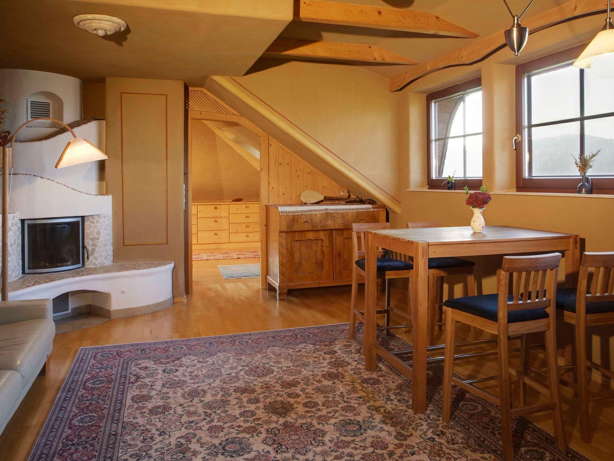 Panorama-Dachappartement, 50 qm, 2 bis 6 Personen, Lehmputz, Miniküche, Kinder getrennt