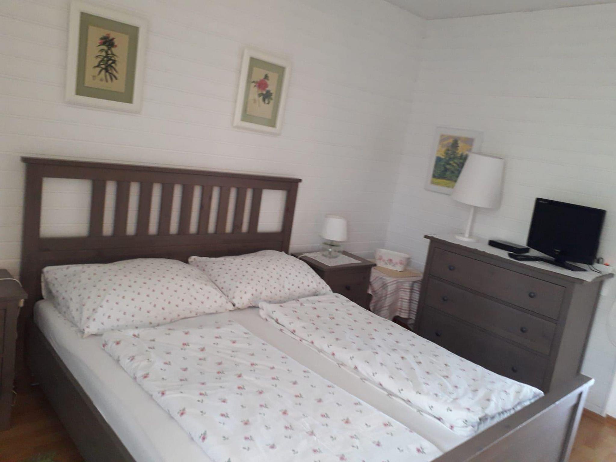 Ausstattung: E-Herd, Kühlschrank, Toaster, Kaffeemaschine, Staubsauger, SAT-TV, Fön, Geschirr, Bett- und Tischwäsche, E-Heizung, etc.