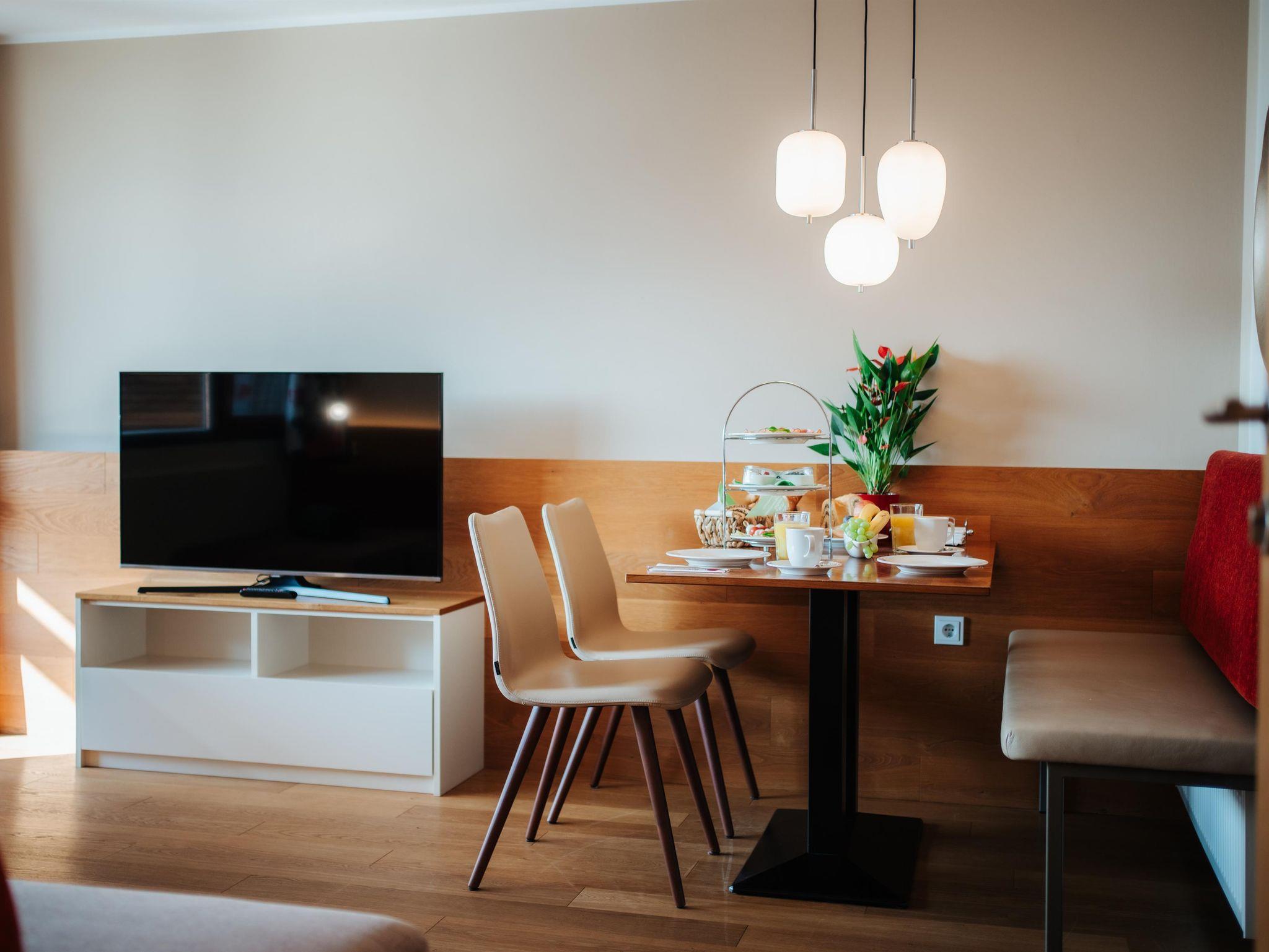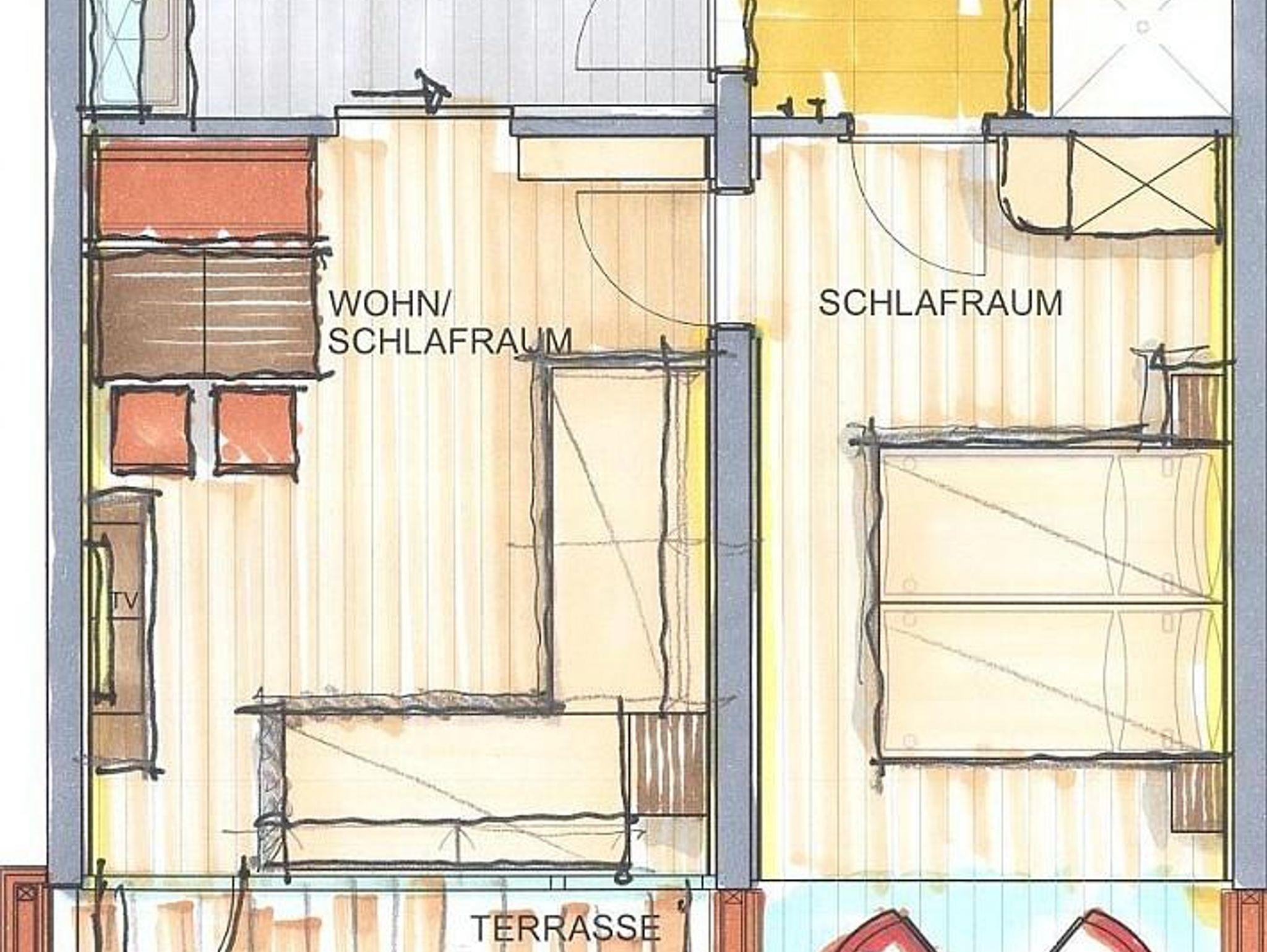 Dieses Apartment verfügt über ein Schlafzimmer mit raumhohen Panoramafenstern, ein Wohnzimmer mit Essbereich, Flat-Screen, Telefon, Stereo-Anlage und zwei qualitativ hochwertige Couch-Betten, einen Vorraum mit umfassend ausgestatteter Küche sowie ein Badezimmer mit Dusche und WC und einer großen südseitigen Terrasse.