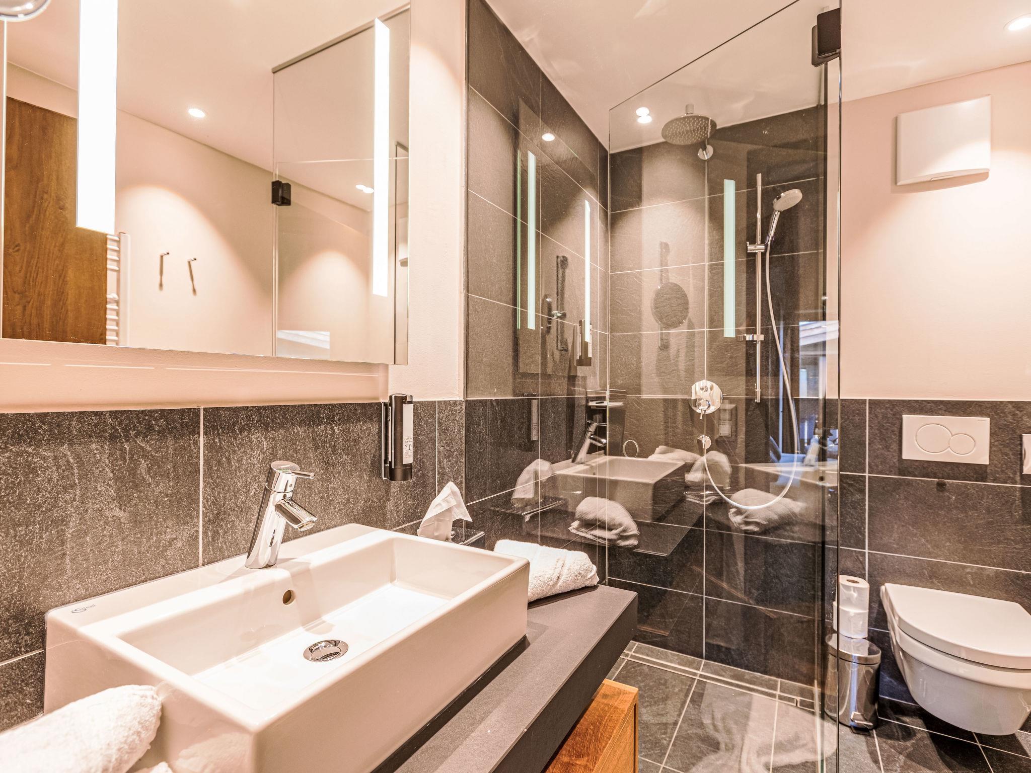 "Chalet mit 4 Schlafzimmern", 5-room chalet 147 m2. Bright, modern and tasteful furnishings: living/sleeping room with 1 double sofabed, dining table and satellite TV (flat screen). 4 double bedrooms. Open kitchen (oven, dishwasher, 4 ceramic glass hob hotplates, toaster, kettle, microwave, electric coffee machine, Capsules for coffee machine (Nespresso) extra). 4 showers/WC. Heating. Balcony. Balcony furniture. Beautiful view of the mountains. Facilities: hair dryer. Internet (WiFi, free). Please note: non-smokers only.