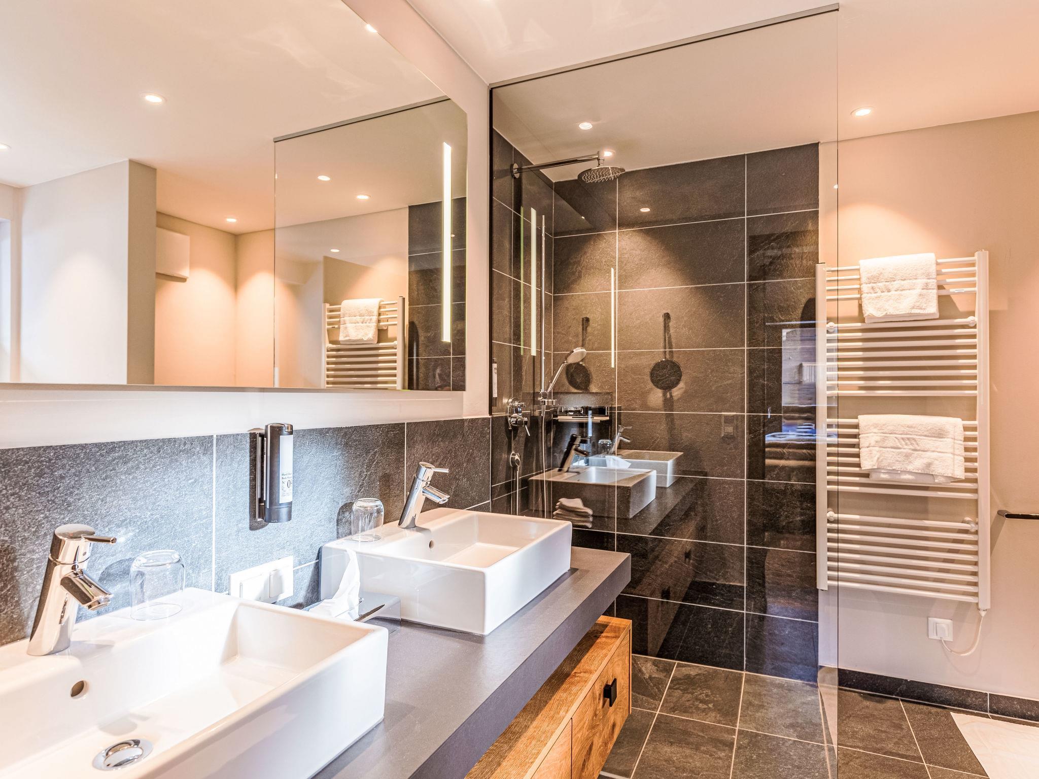 Ehrwald: Premium holiday apartments and holiday homes in Ehrwald with wellness area, breakfast included. Modern, comfortable resort "Bergresort Zugspitze by AlpsResort". 100 m from the centre of Ehrwald, 8 km from the skiing area. For shared use: swimming pool heated (seasonal availability: 01.Jan. - 31.Dec.). In the complex: reception, restaurant, sauna, fitness room, steam room, solarium (extra). (all included), relaxation room, spa area hamam. Parking at the house, communal covered parking. Supermarket 500 m, outdoor swimming pool 20 km. Golf course (12 hole) 3 km, skisport facilities 8 km, ski rental 8 km, children's ski school 8 km, cross country ski track 2 km. Nearby attractions: Alpentherme Ehrenberg 20 km. Well-known ski regions can easily be reached: Ehrwald Zugspitze. Hiking paths: Tiroler Zugspitz Arena. The photo is just an example.