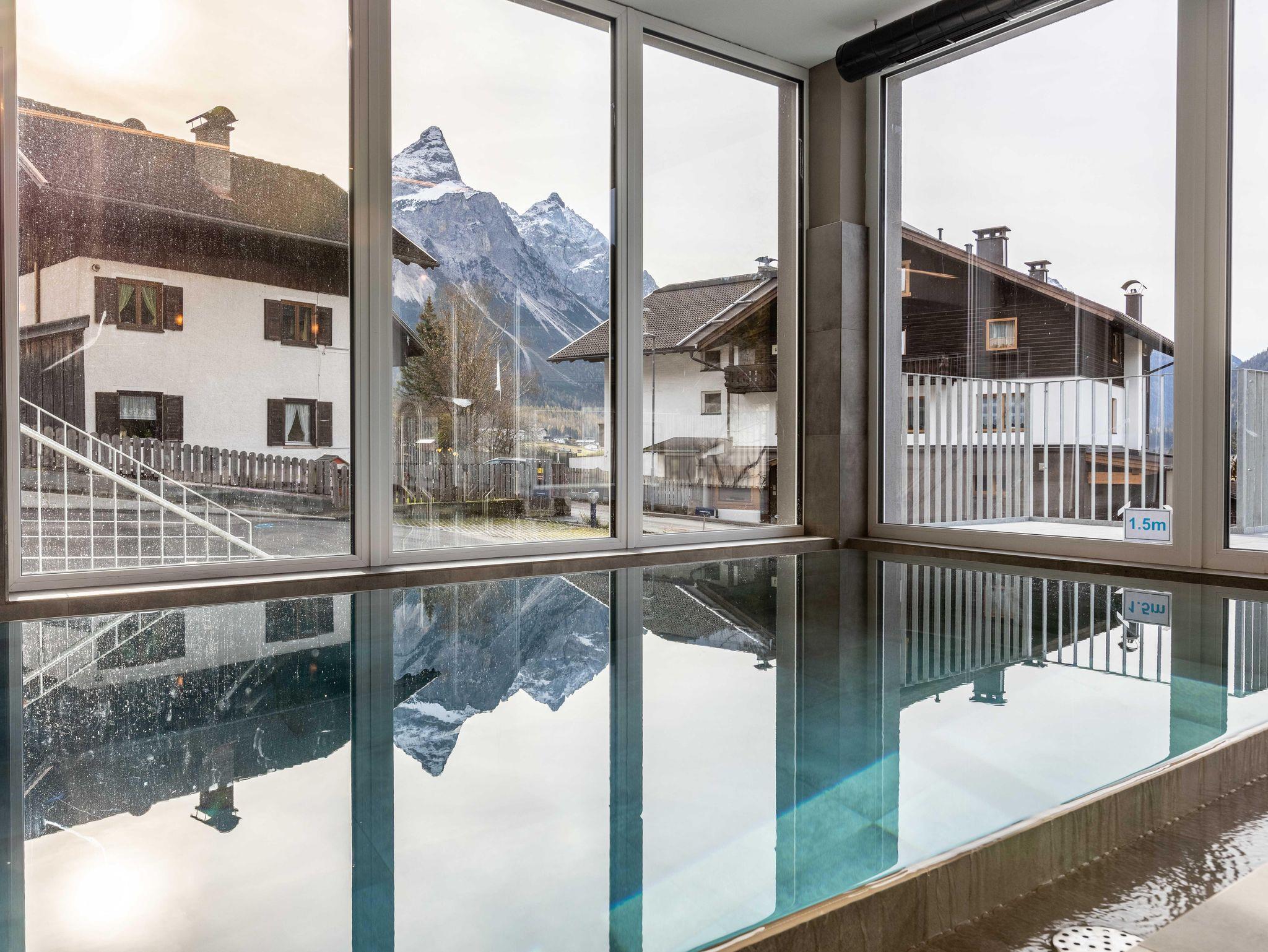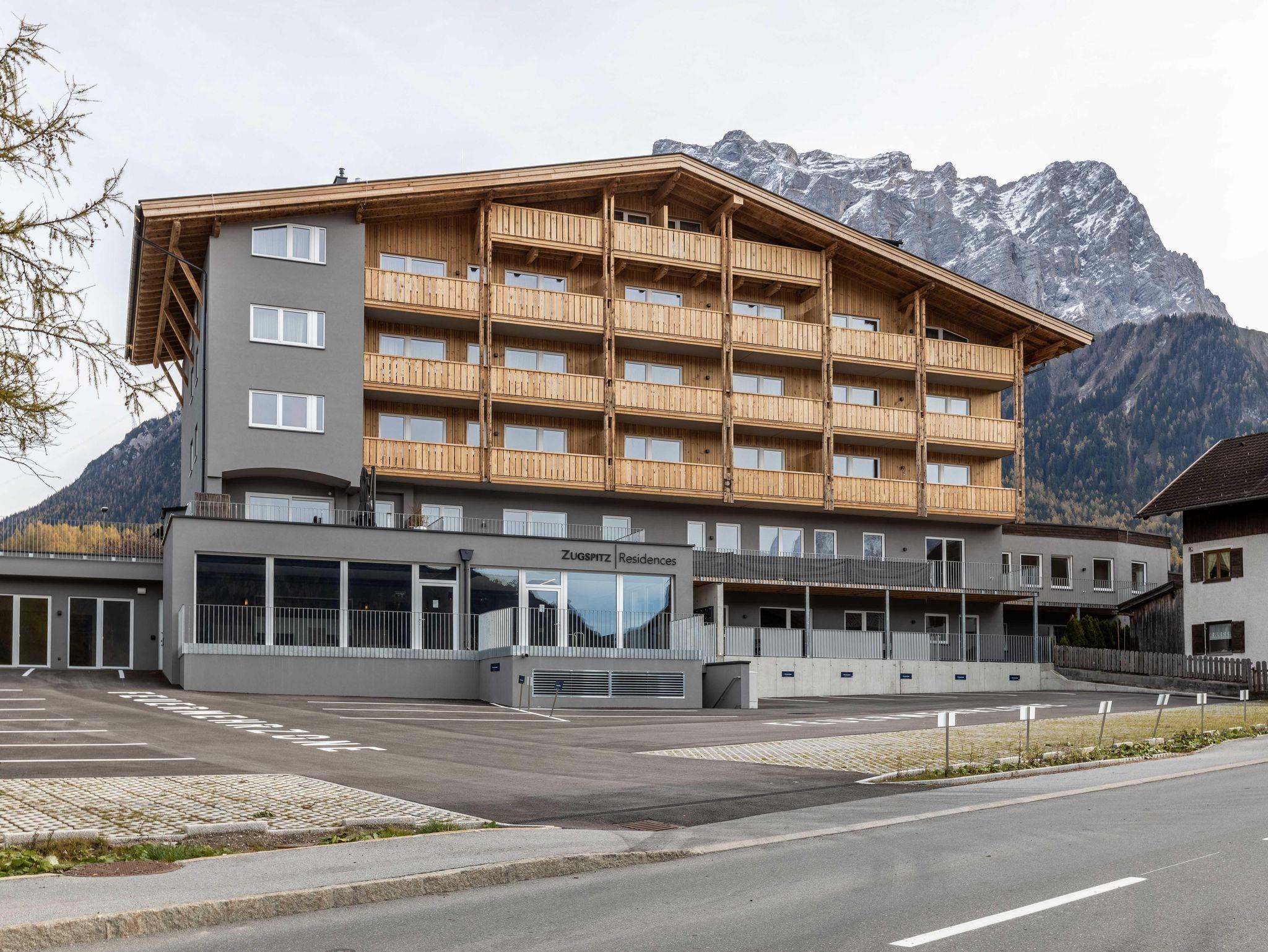 Zugspitz Residences liegt im Herzen von Ehrwald, direkt neben dem Golfplatz und in unmittelbarer Nähe des weit bekannten Ehrwalder Schigebiets. Dieser einzigartige, familienfreundliche Topspot garantiert ganzjährig Sport- und Freizeiterlebnisse der besonderen Art. Die bequem vom Haus aus zu erreichende Zugspitz Arena mit 56 Bergbahnen bietet auf 142 Pistenkilometern abwechslungsreiches Skivergnügen in allen Schwierigkeitsgraden! Des Weiteren sind eine problemlose Anbindung (Flughafen Innsbruck, 75 km - Flughafen München (DE), 147 km - Flughafen Salzburg, 196 km - Flughafen Zürich (CH), 200 km) und diverse Ausflugsziele (Bayrische Königsschlösser, Seefeld, Ötzi Dorf, Swarovski Kristallwelten, Innsbruck uvm.) gegeben. Parkmöglichkeiten sind rund um die Residenz vorhanden. Für Körper und Seele besteht im Erdgeschoß ein exklusiver Wellnessbereich mit Indoor-Infinity-Pool, finnischer Sauna, Bio-Sauna sowie Infrarotkabine, Regenerationsdusche und einem Ruheraum für totale Entspannung. Der Außenbereich animiert im Sommer zum Relaxen in der Sonne und im Winter ist dort Erfrischung nach einem ausgiebigen Saunagang möglich.