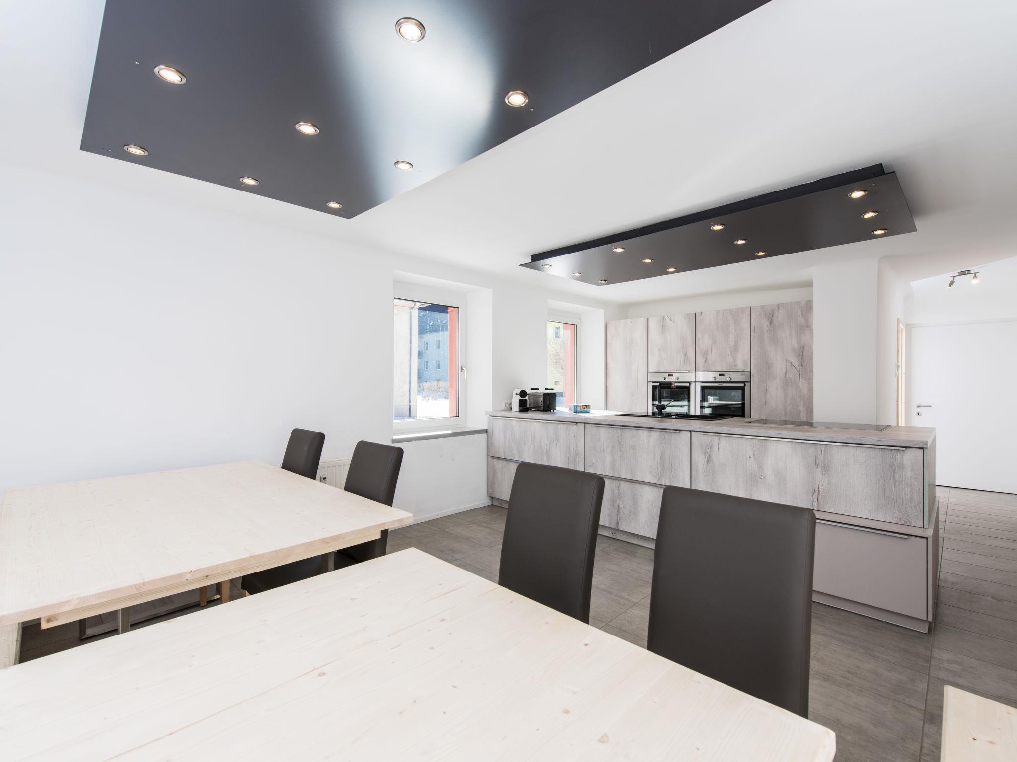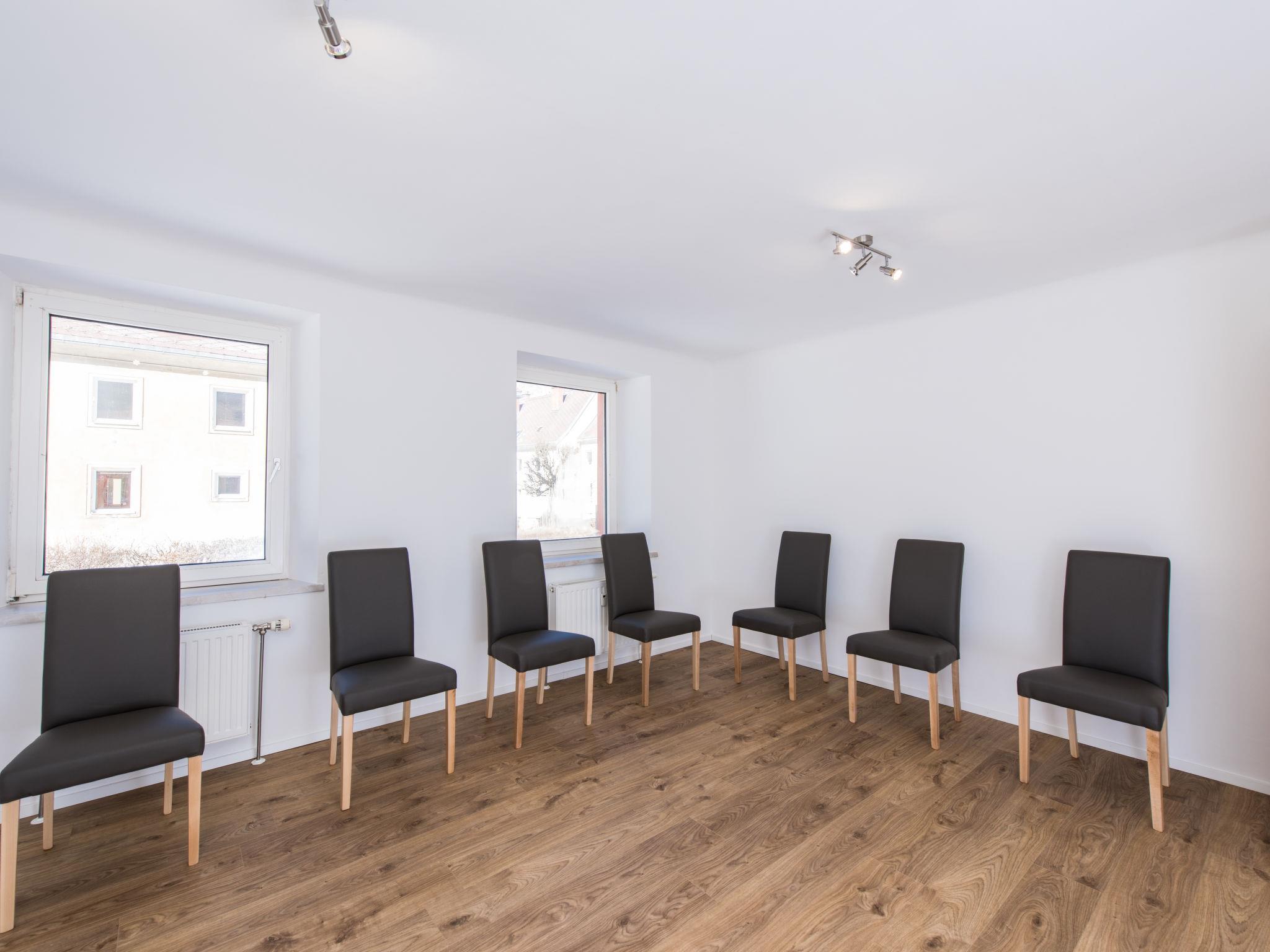 "für bis zu 27 Personen mit Sauna", 11-room house 270 m2. Spacious and bright, comfortable and cosy furnishings: large living room. Playroom. Dining room with dining table. Large, open kitchen (oven, dishwasher, 4 ceramic glass hob hotplates, toaster, kettle, microwave, freezer, electric coffee machine) with dining table. Sep. WC. Upper floor: 2 rooms, each room with 2 x 2 bunk beds. 2 rooms, each room with 2 beds and satellite TV. 3 rooms, each room with 1 x 2 bunk beds, 1 double bed and satellite TV. 1 room with 1 bed and 1 x 2 bunk beds. 5 showers/WC, 5 sep. WC's. Wooden floors. Terrace 40 m2. Terrace furniture. Very beautiful panoramic view. Facilities: Internet (WiFi, free). Please note: non-smoking house. Maximum 1 pet/ dog allowed. The clubhouse is ideal for workshops, clubs, incentives or large families. On the ground floor there is a spacious eat-in kitchen, 3 multifunctional lounge areas and a Finnish/panoramic sauna with shower and toilet facilities. In addition to the bathrooms listed, there is a washroom with 5 washbasins on the first floor.