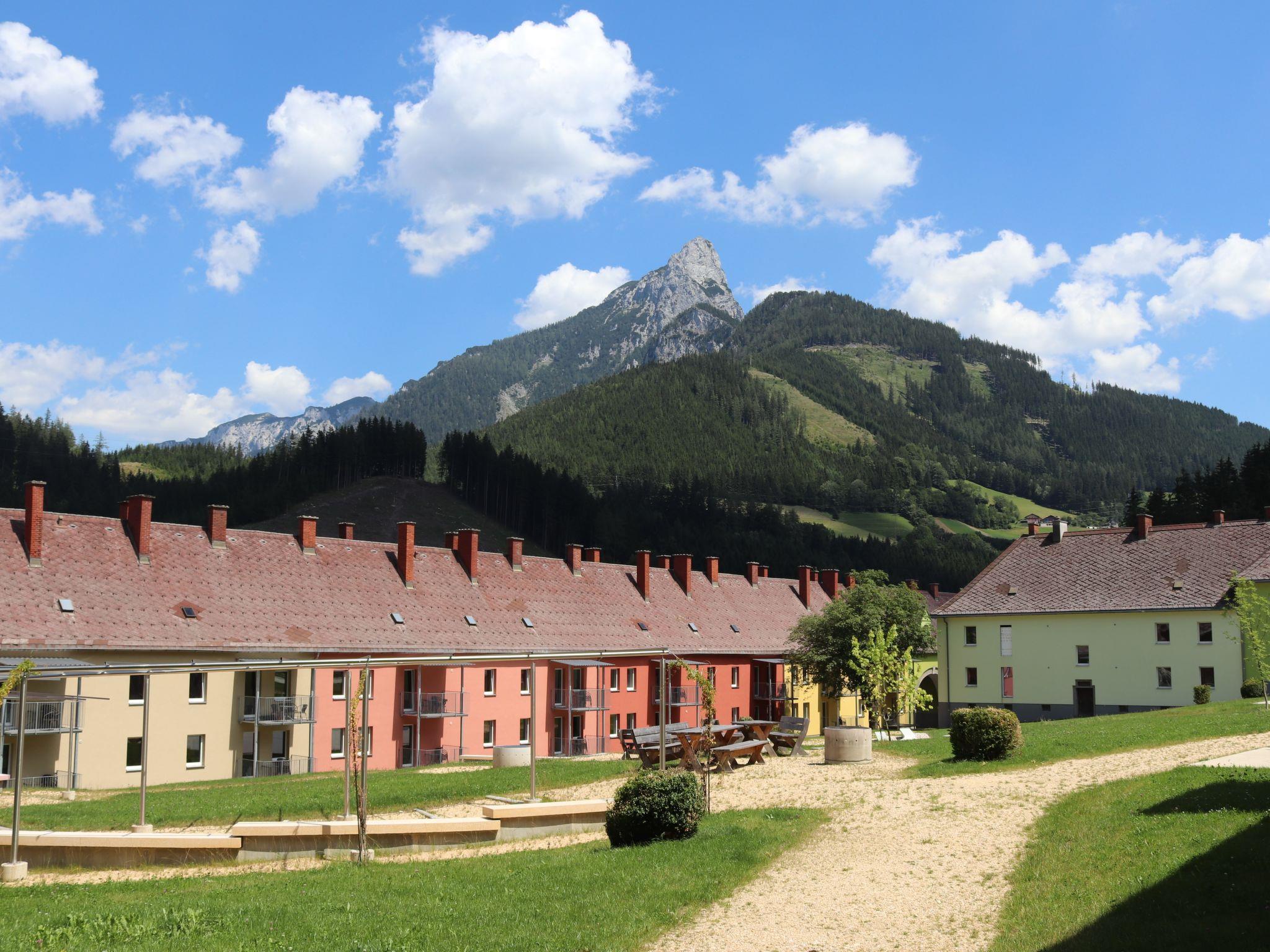 Here, a historic miners' settlement has been carefully adapted for tourism. Modern, comfortable resort "Erzberg Alpin by Alps Resorts". 3 km from the centre, in a sunny, elevated position, 1.5 km from the lake, 11 km from the skiing area. For shared use: large garden with plants and trees, lawn for sunbathing. Children's playground, planted inner courtyard. In the complex: reception, WiFi, central heating system, washing machine (for shared use, extra). Breakfast and half board (extra). Parking at the house. E-charging station. Supermarket 1.5 km, restaurant 200 m, diving center 6 km, indoor swimming pool 3 km, lake Leopoldsteiner See 1.5 km. Sports centre 100 m, skisport facilities 11 km, cross country ski track 6 km, ice rink 1.5 km. Nearby attractions: Abenteuer Erzberg 5 km, Naturpark Gesäuse 12 km, Schaubergwerk Radmer 17 km. Well-known ski regions can easily be reached: Skigebiet Präbichl 12 km. Hiking paths: Hochschwab. Please note: car recommended. The photo is just an example. Admission to the Vitalbad Eisenerz + 1 city tour per stay FREE for all guests! The Vitalbad closed in September for renovation. Erzberg Alpin guest card included.