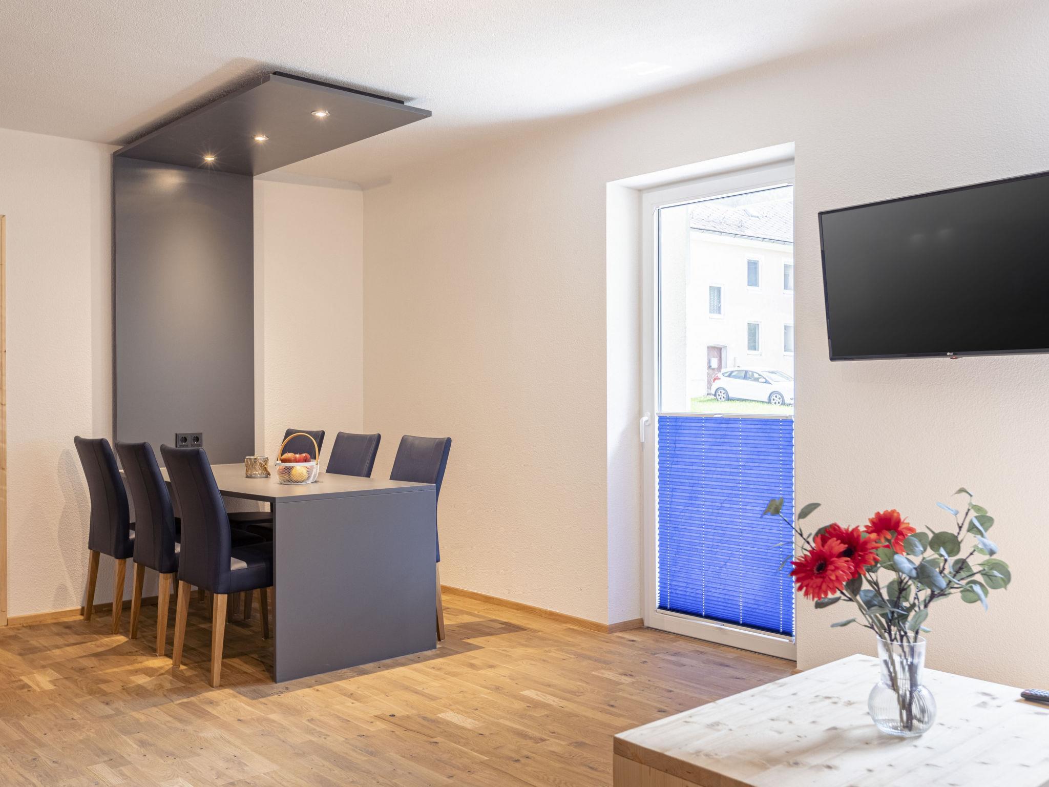 "für 4 P. Mit IR-Sauna & Sprudelwanne", 3-room apartment 59 m2. Bright, modern furnishings: living/dining room with dining nook and satellite TV (flat screen). 1 double bedroom. 1 room with 1 x 2 bunk beds. Open kitchen (oven, dishwasher, 4 ceramic glass hob hotplates, toaster, kettle, microwave, electric coffee machine). Shower/WC, sep. WC, hydro massage bath. Balcony. Balcony furniture. Beautiful view of the mountains. Facilities: sauna. Internet (WiFi, free). Please note: non-smokers only. Maximum 1 pet/ dog allowed. The property is one of a type of property or apartment. The sauna is an infrared cabin!