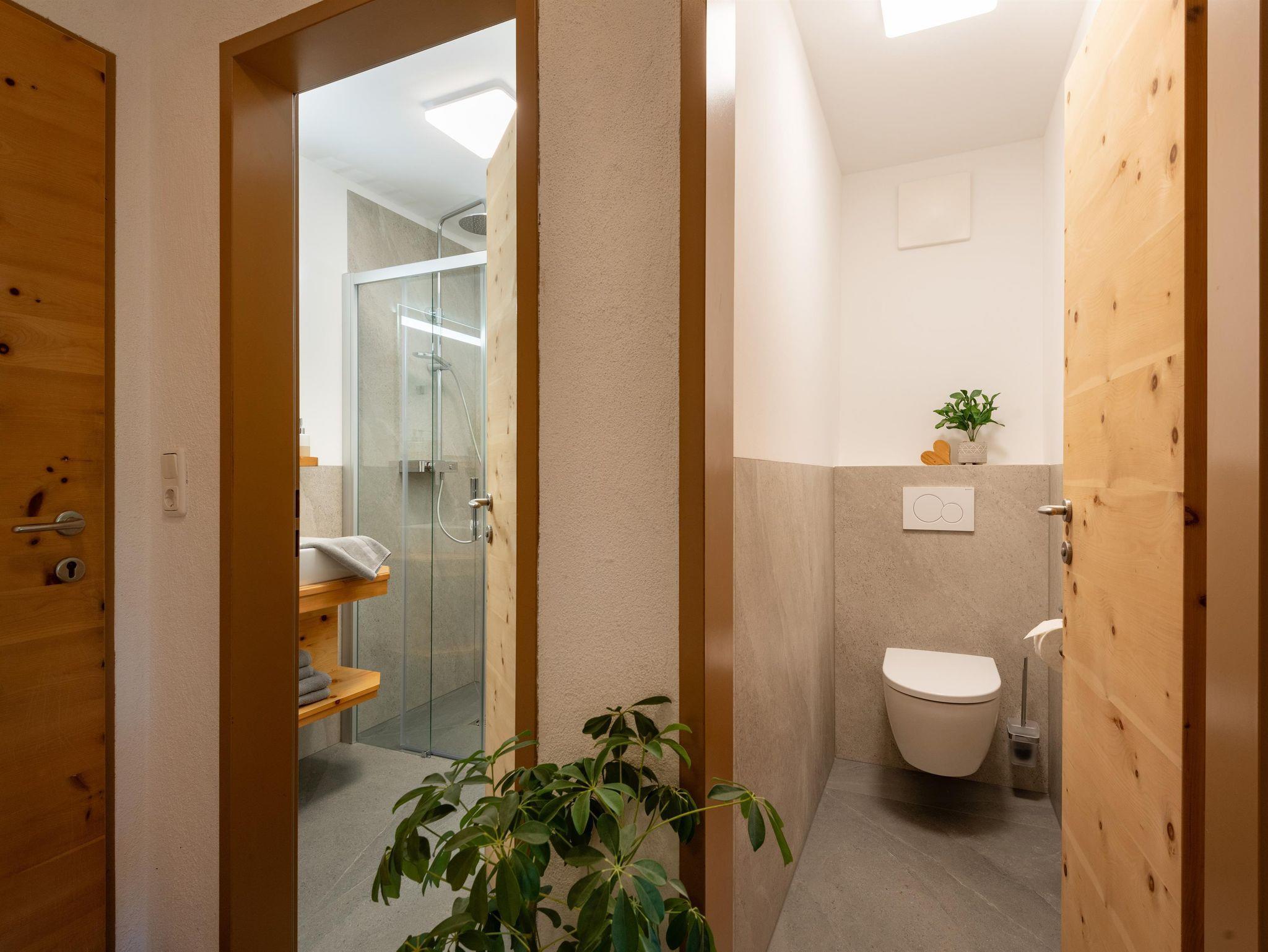 1 großes modernes Bad mit Dusche/WC und Badewanne,